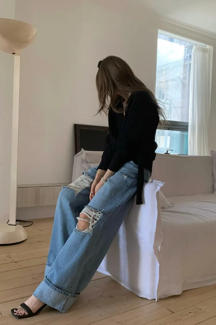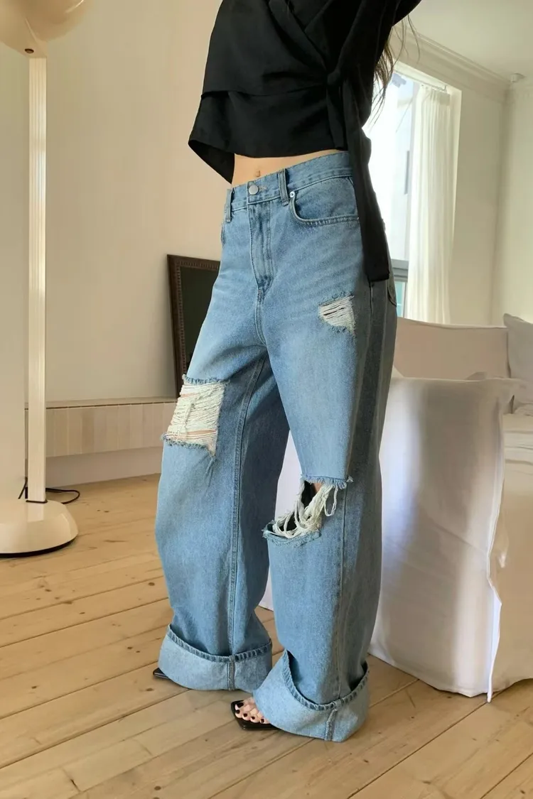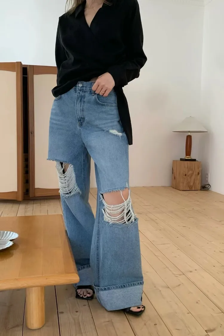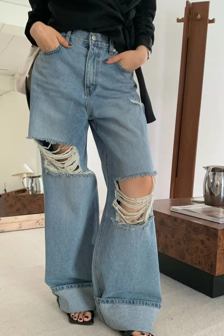 正韓 春夏不可少的刷破褲