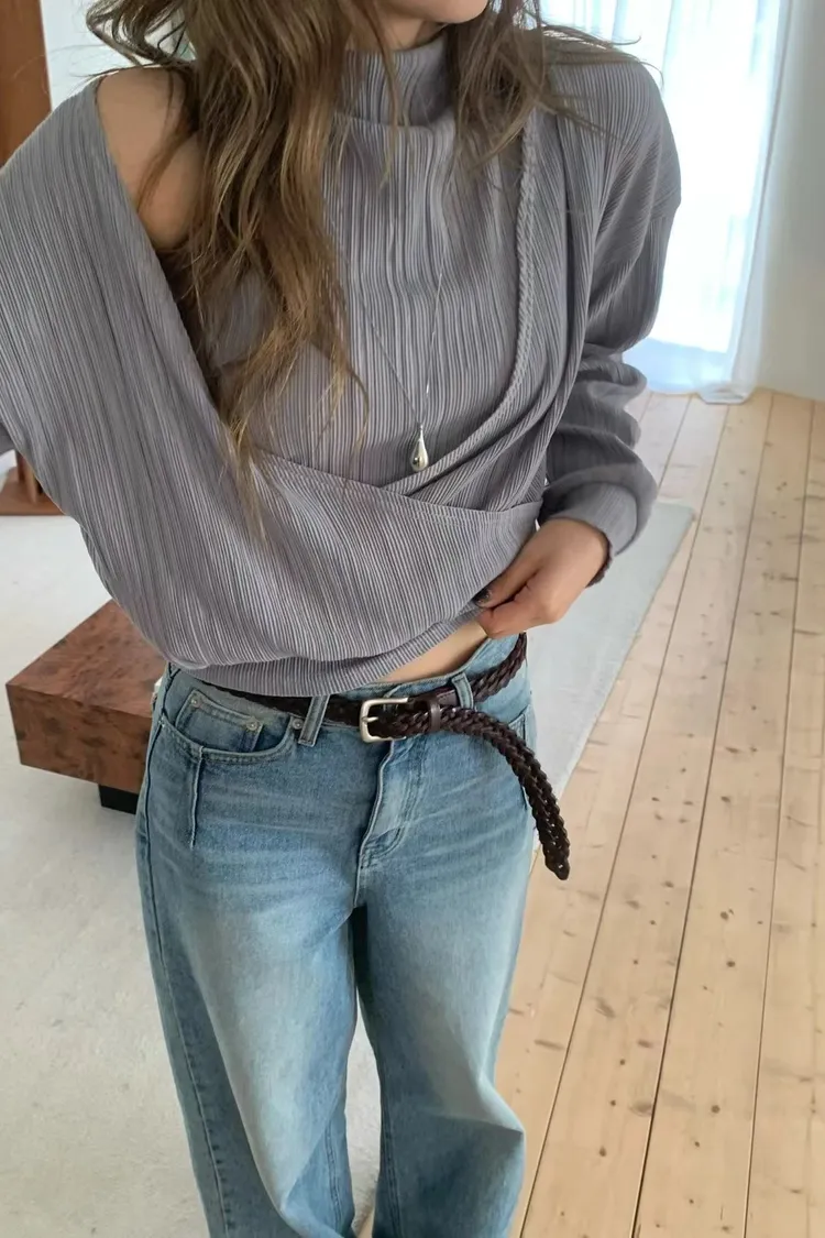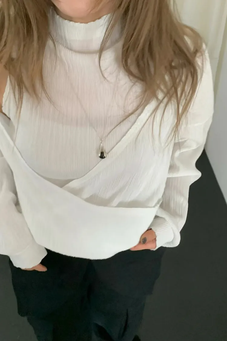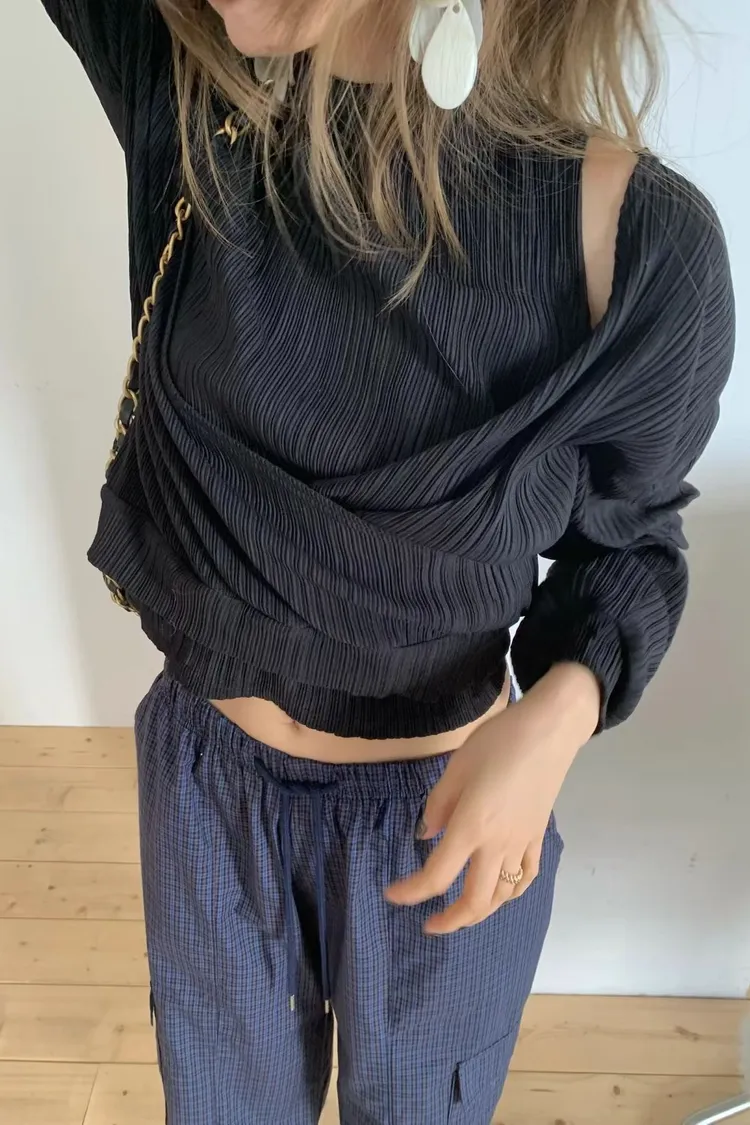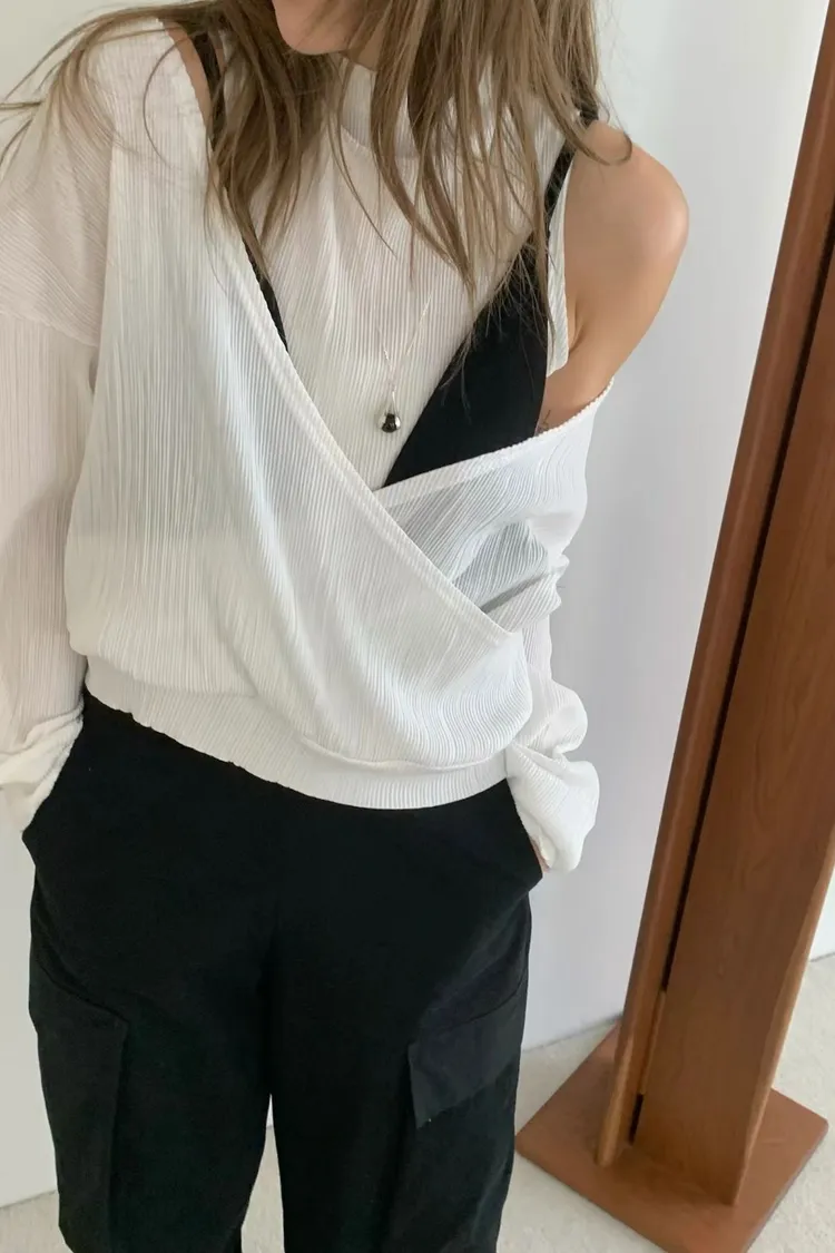 正韓 皺摺上衣兩件套