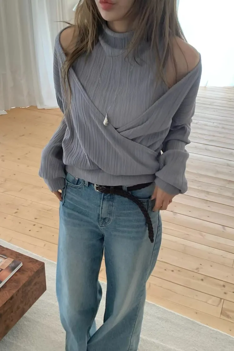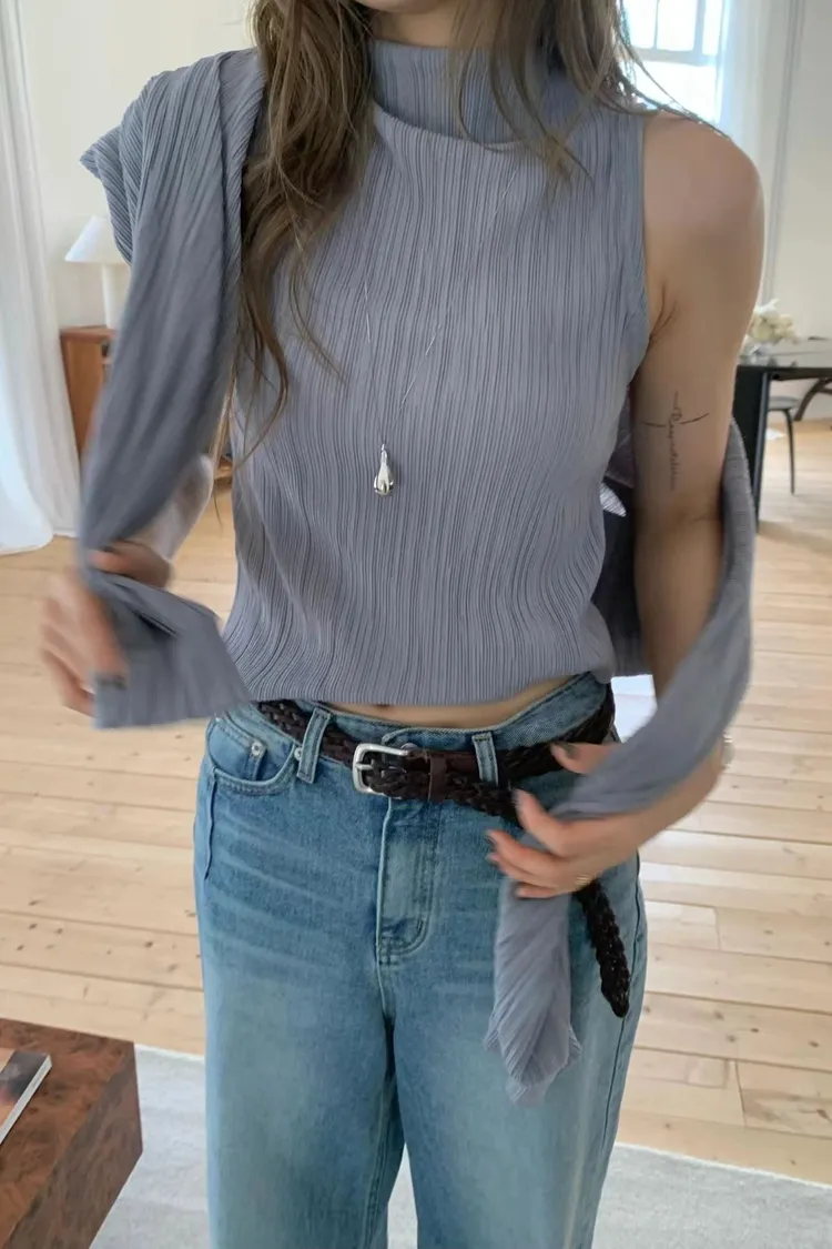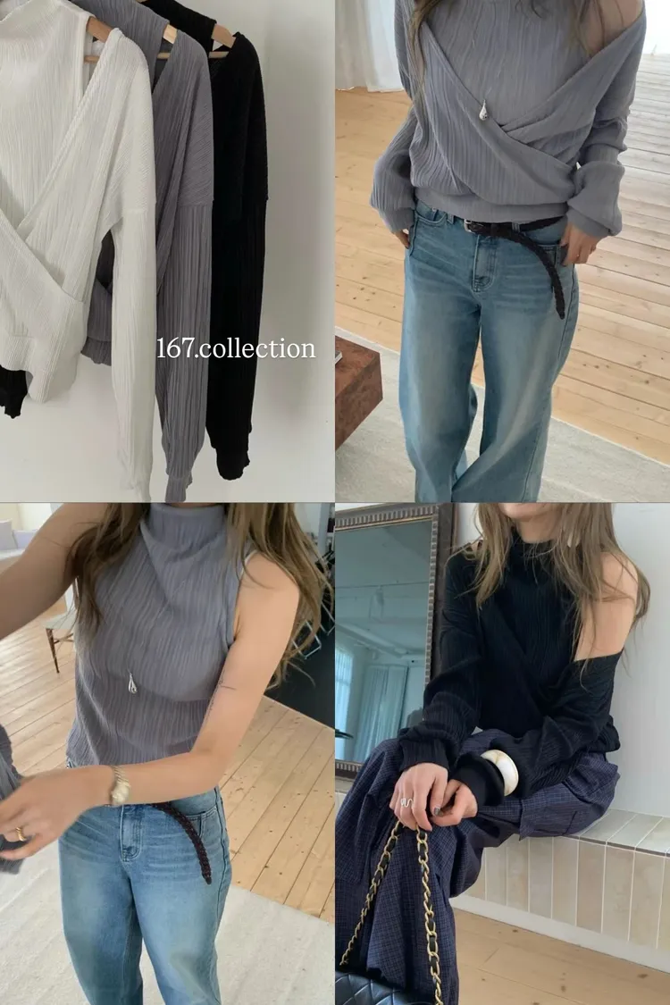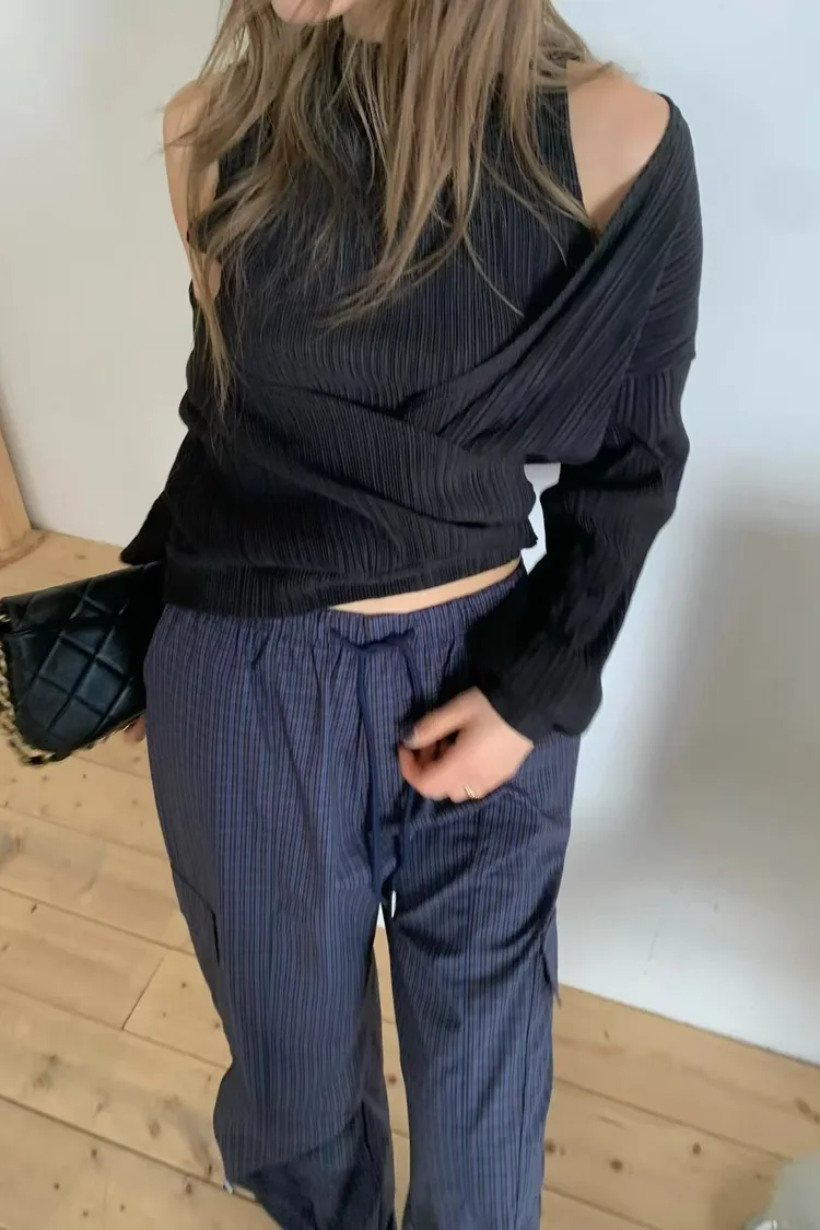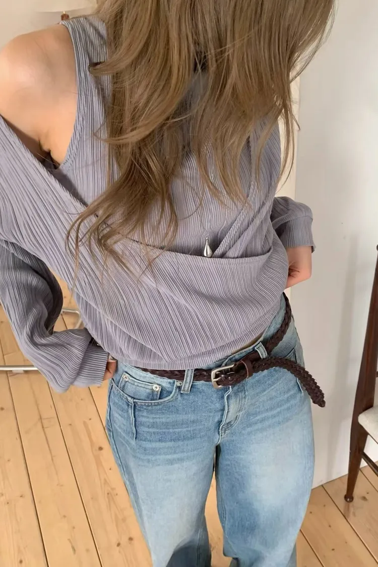 正韓 皺摺上衣兩件套