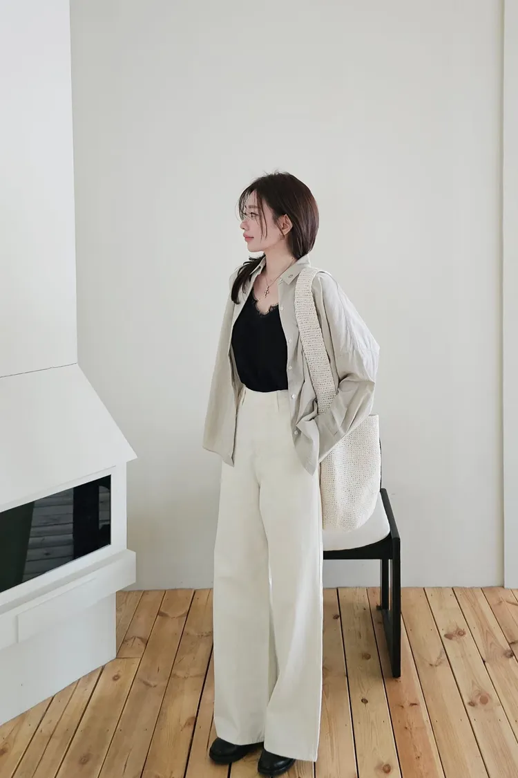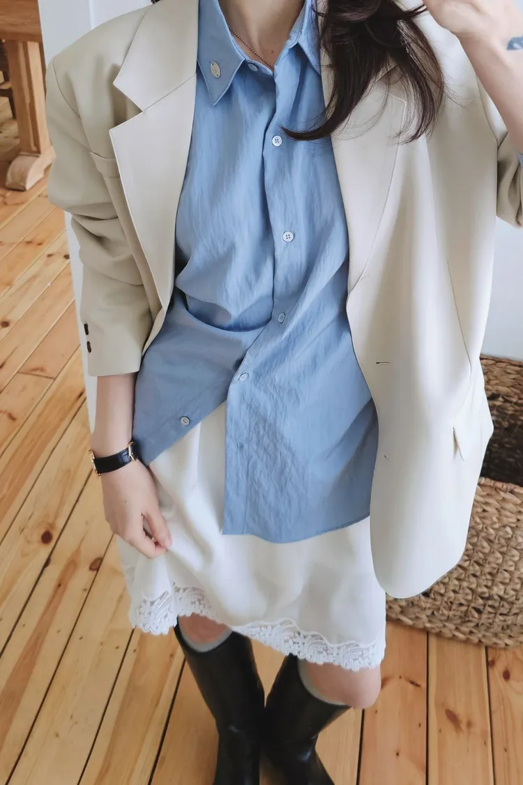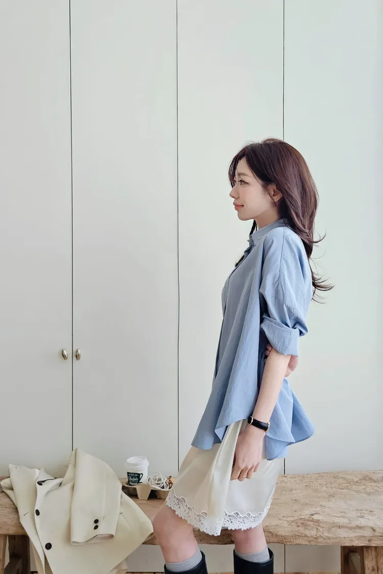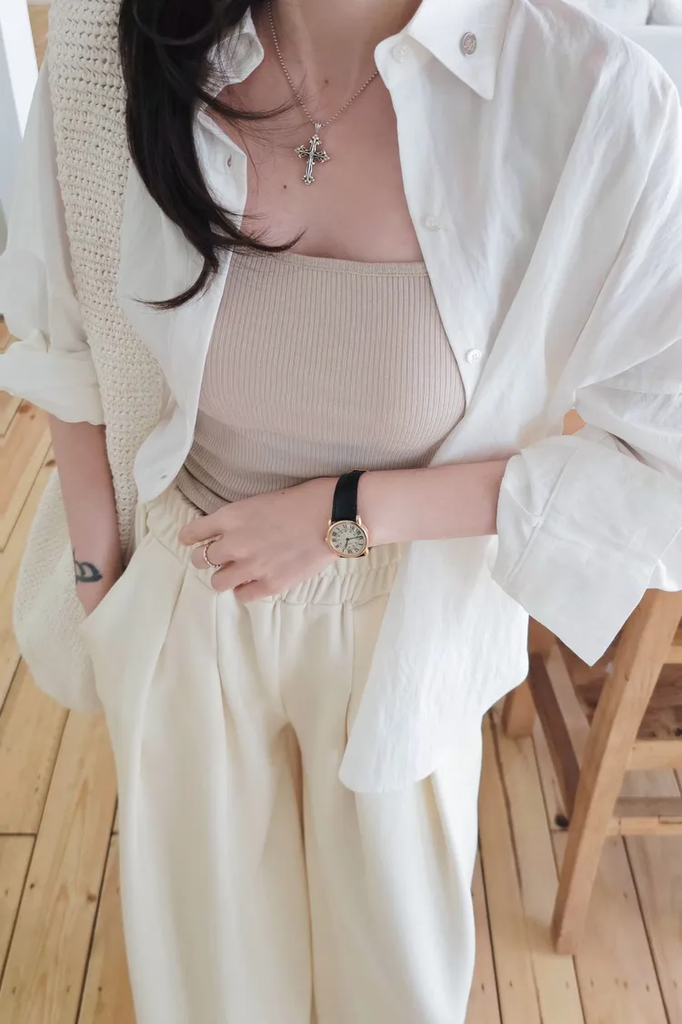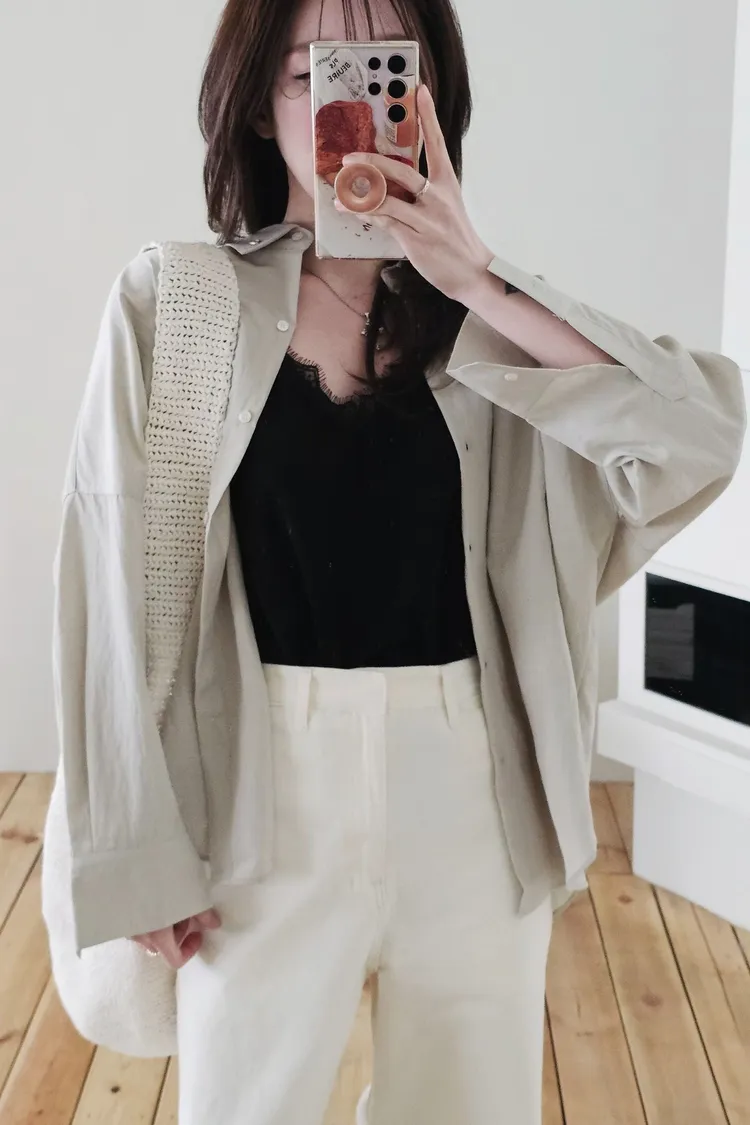 融化奶油般的輕盈低飽和色調,搭配基礎休閒襯衫版型