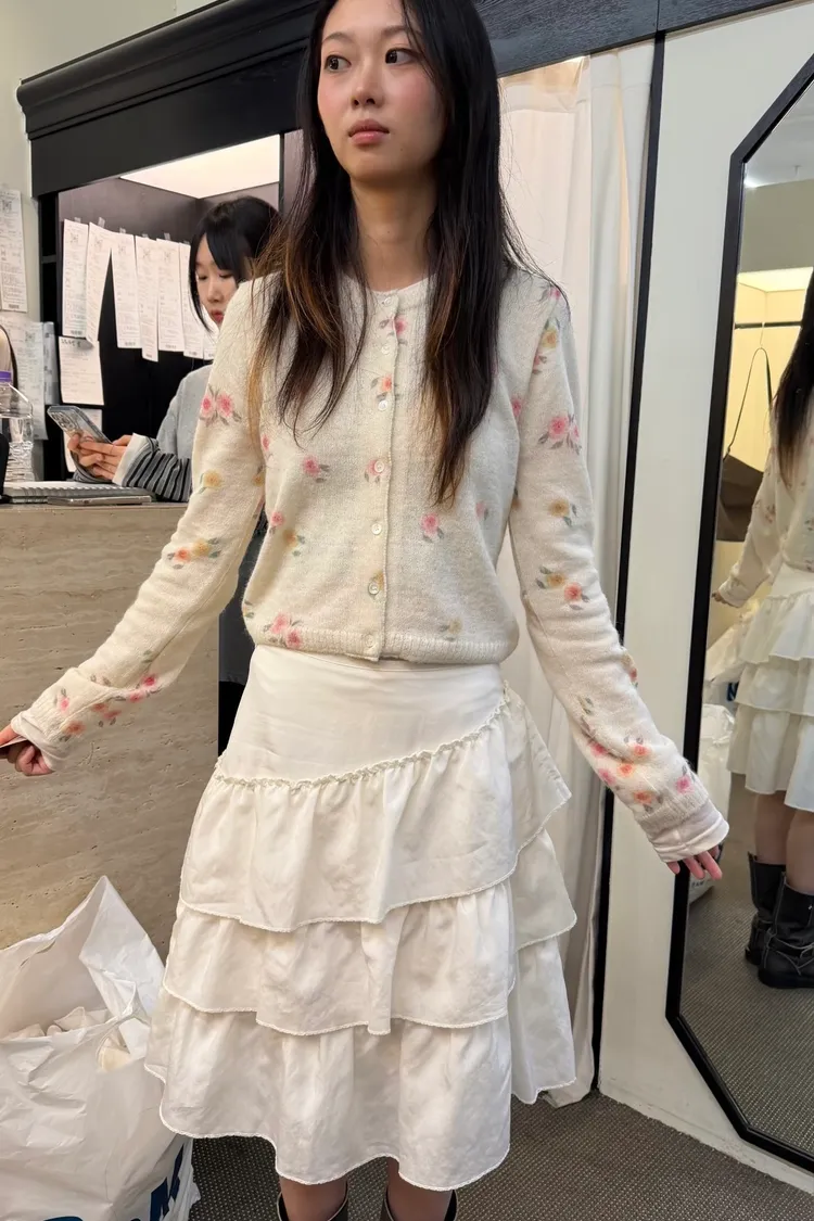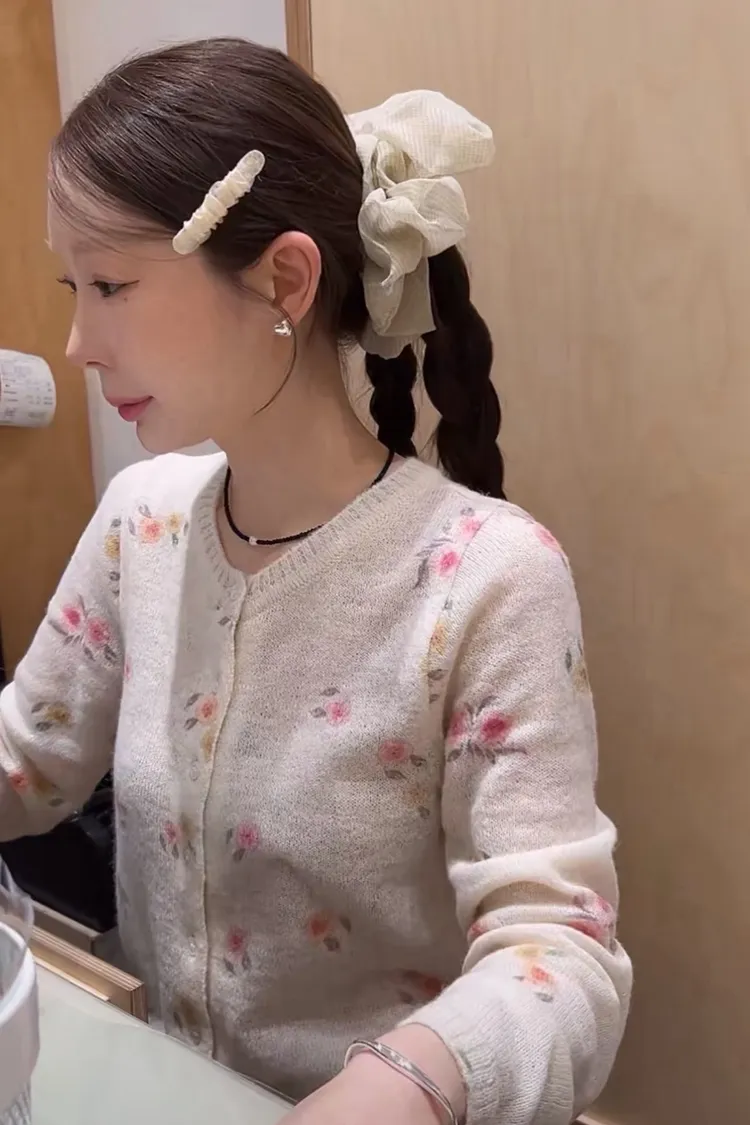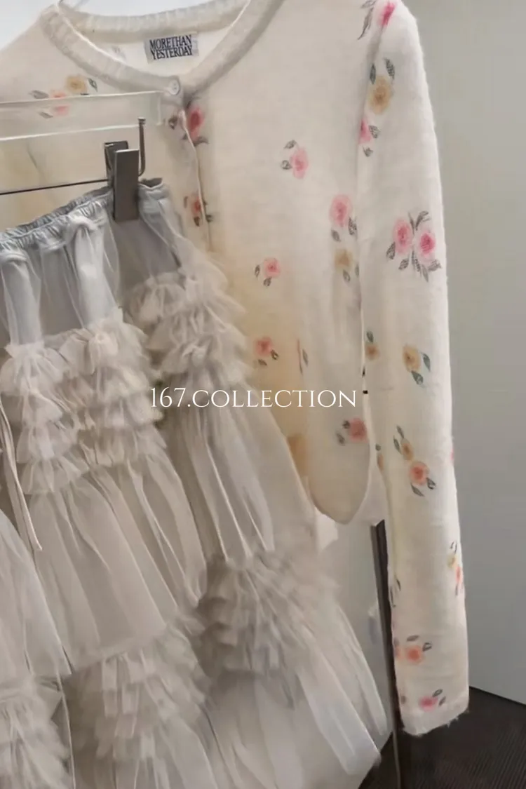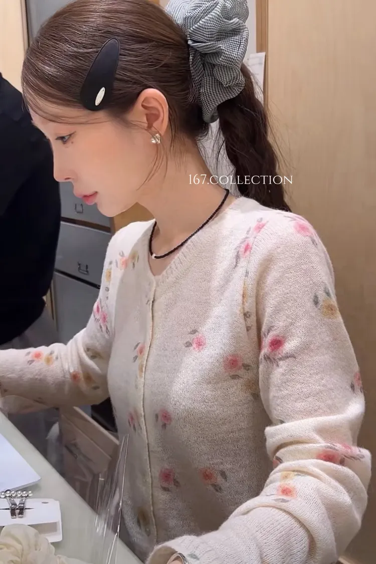 正韓 羊駝毛暈染花朵針織外套