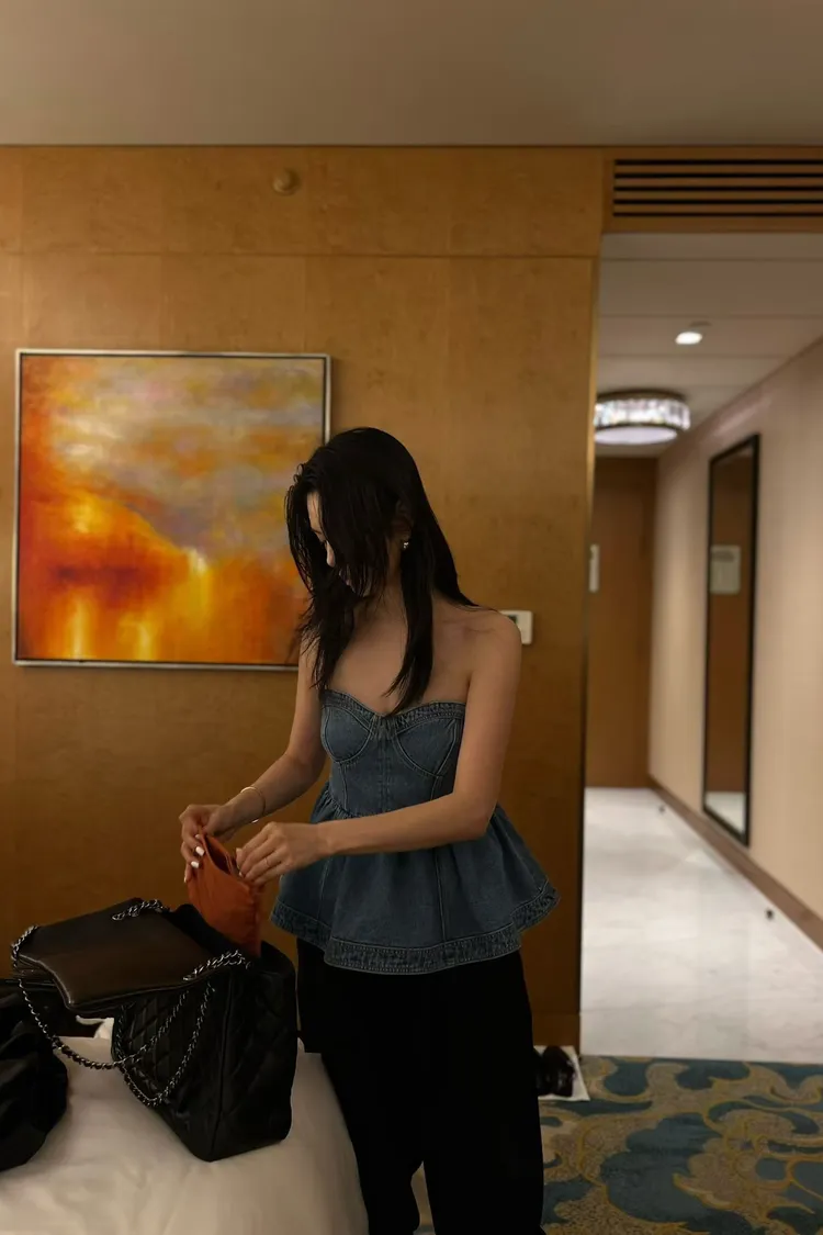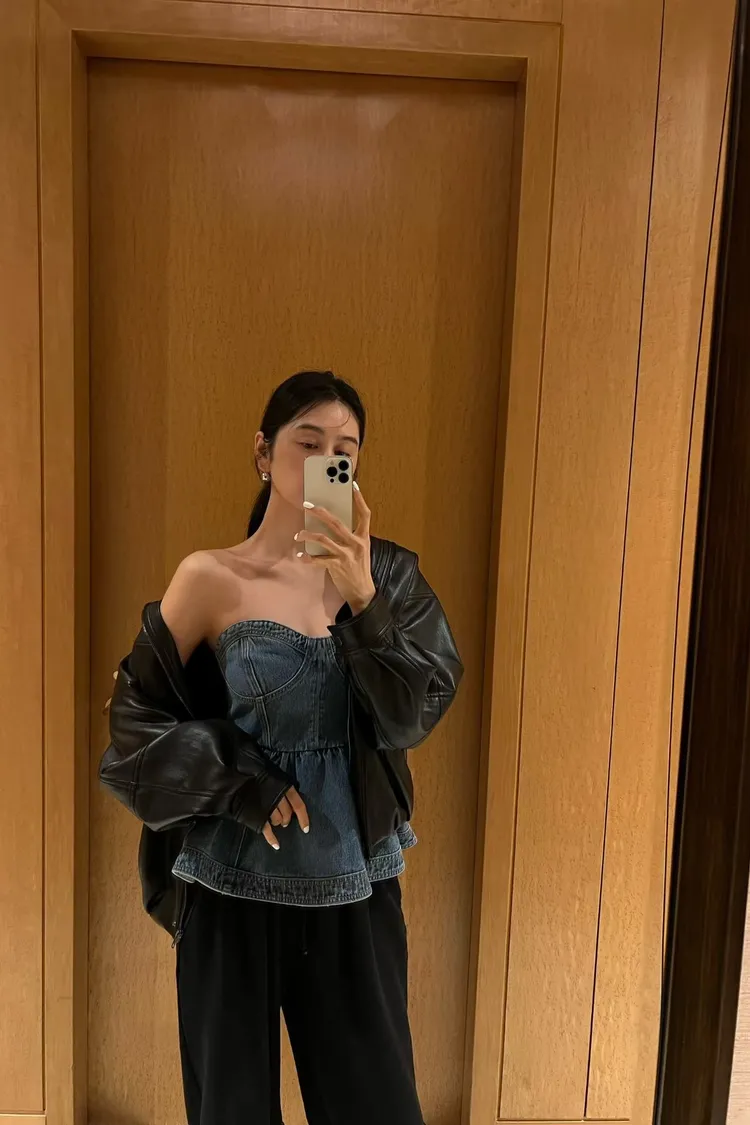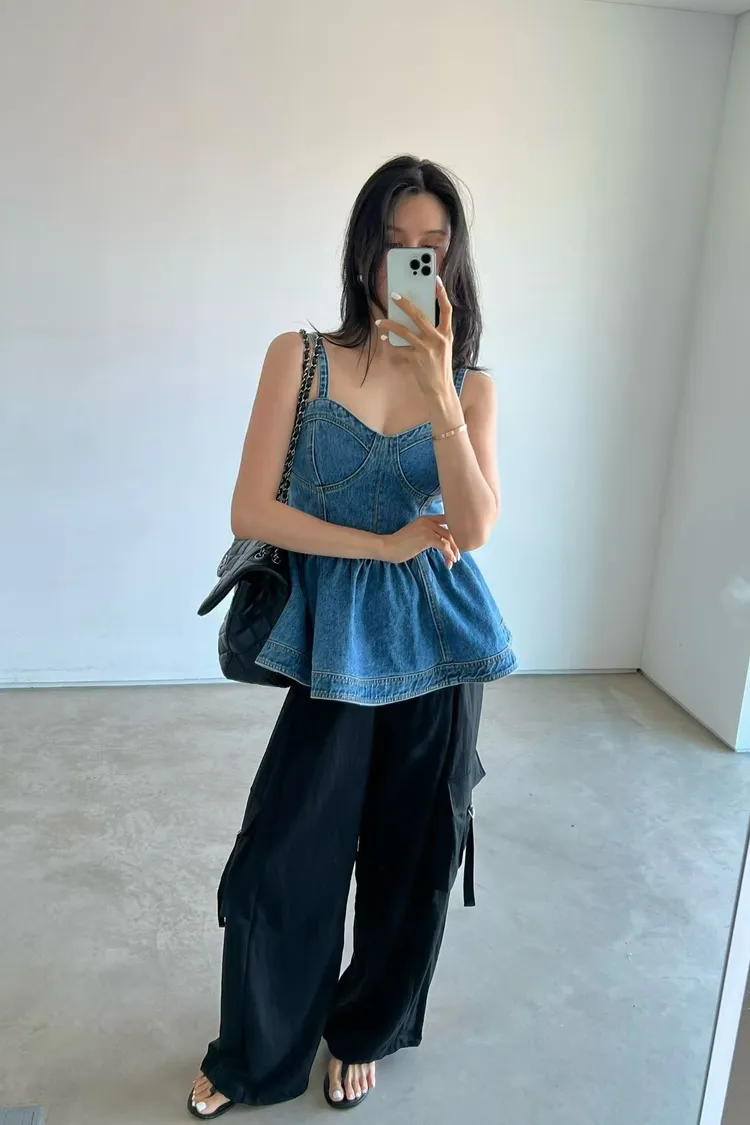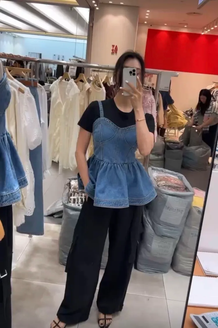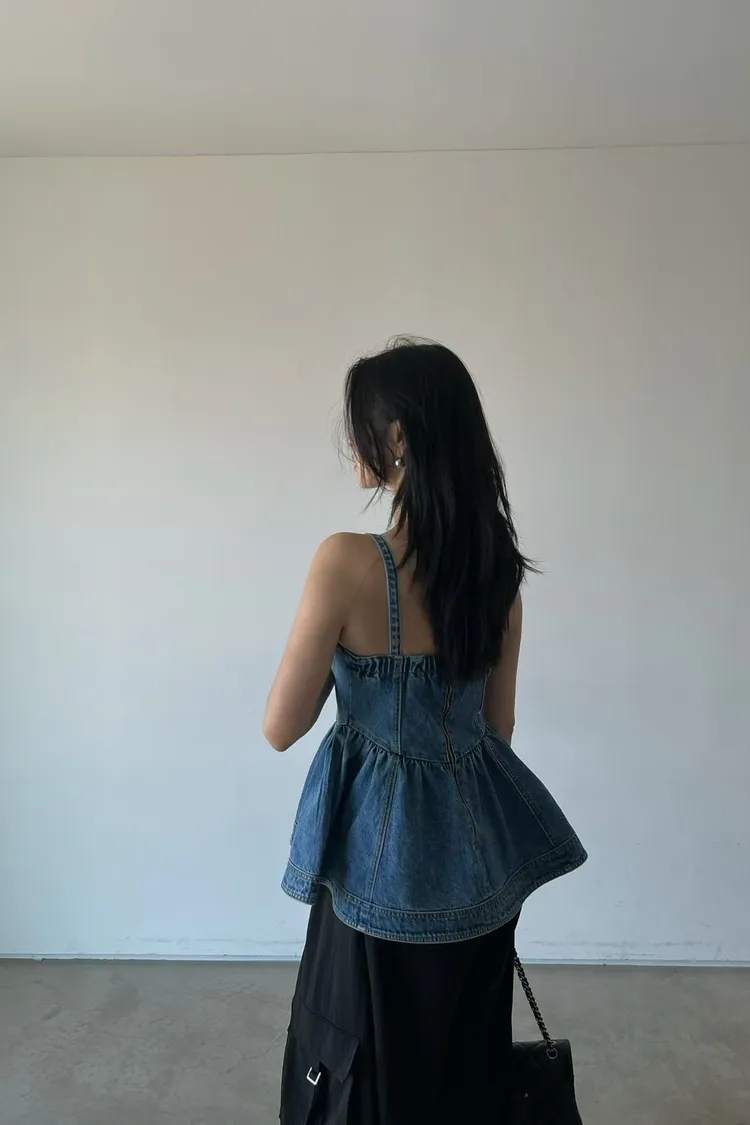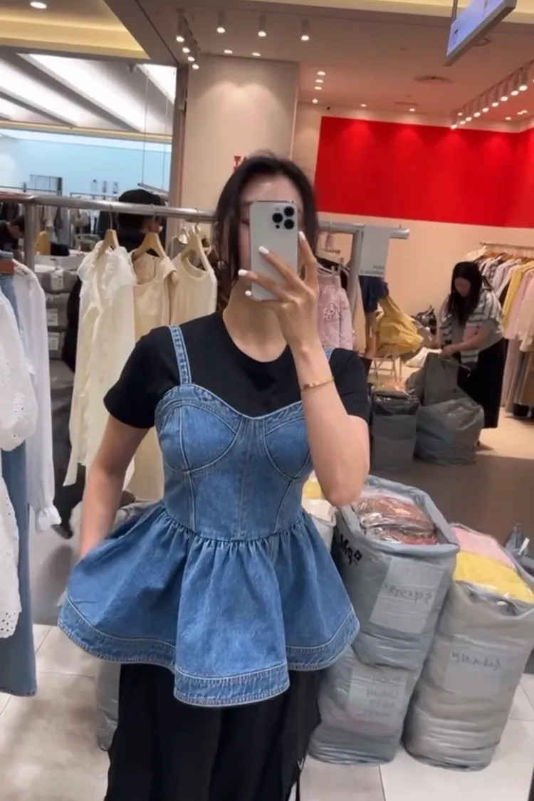 正韓 俏麗桃心領牛仔上衣洋