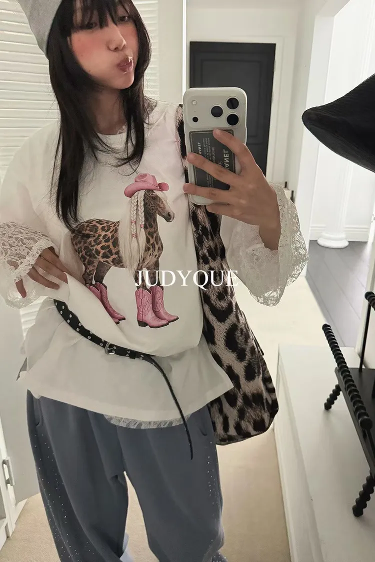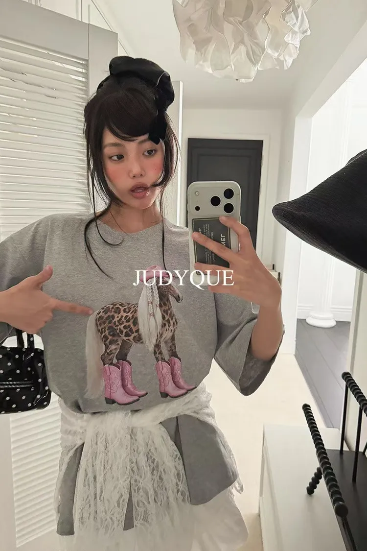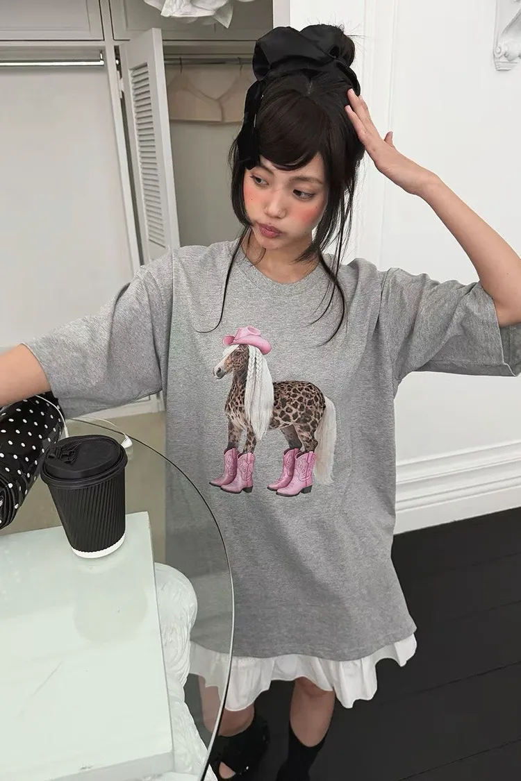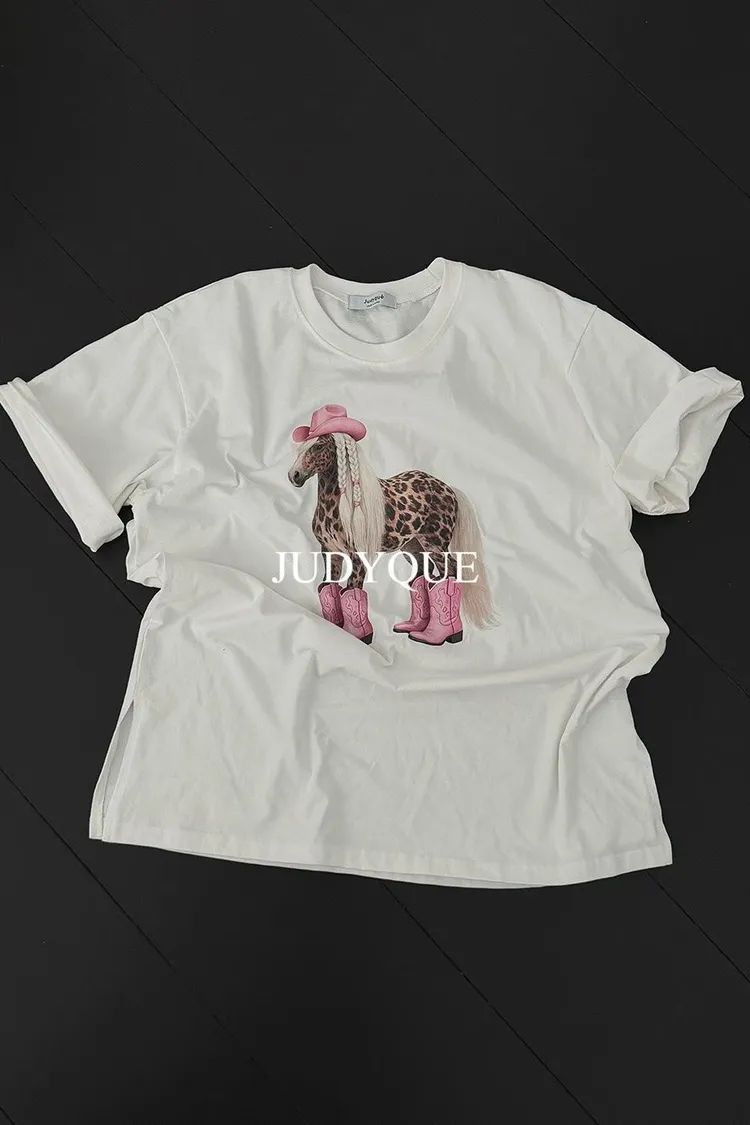 正韓 可愛系牛仔馬寬版上衣