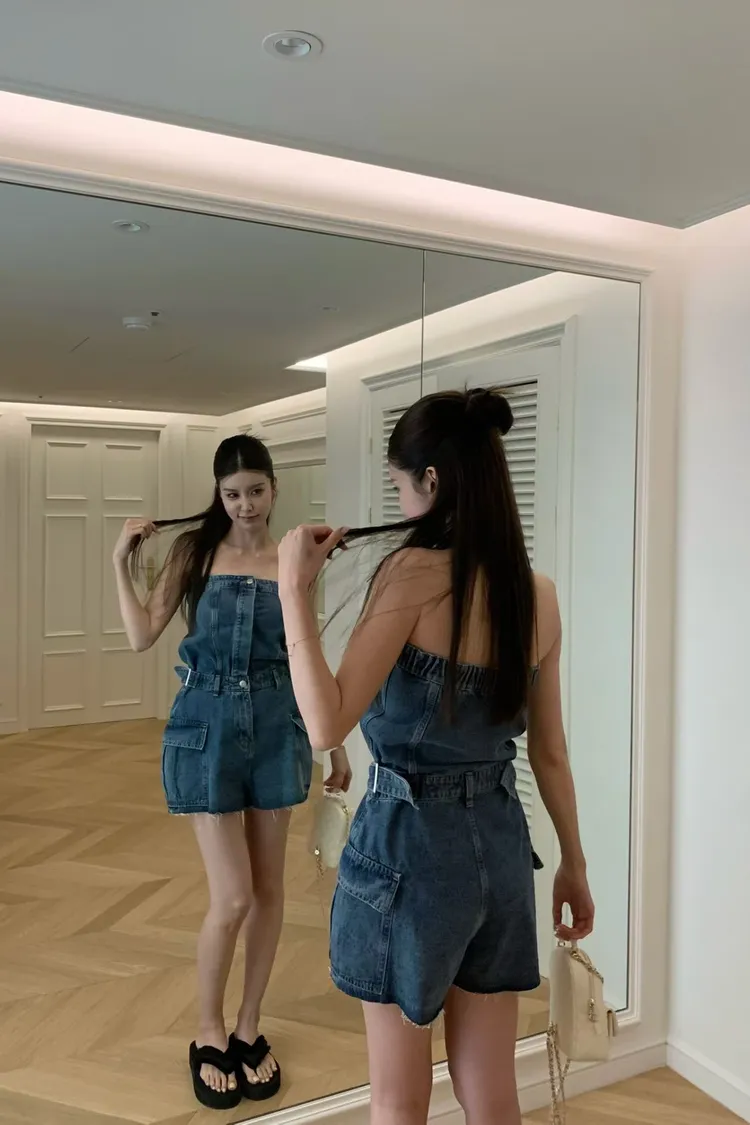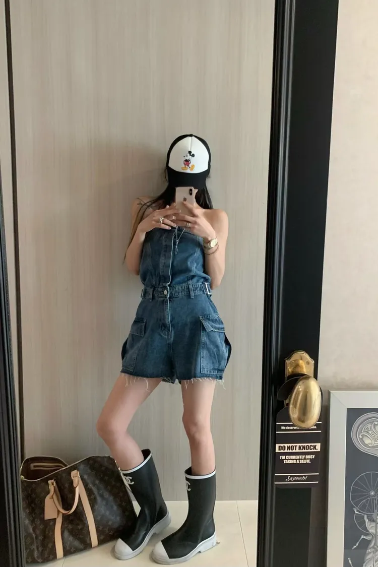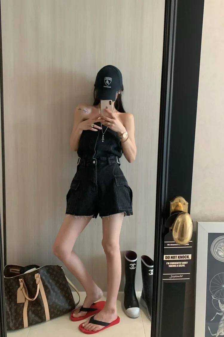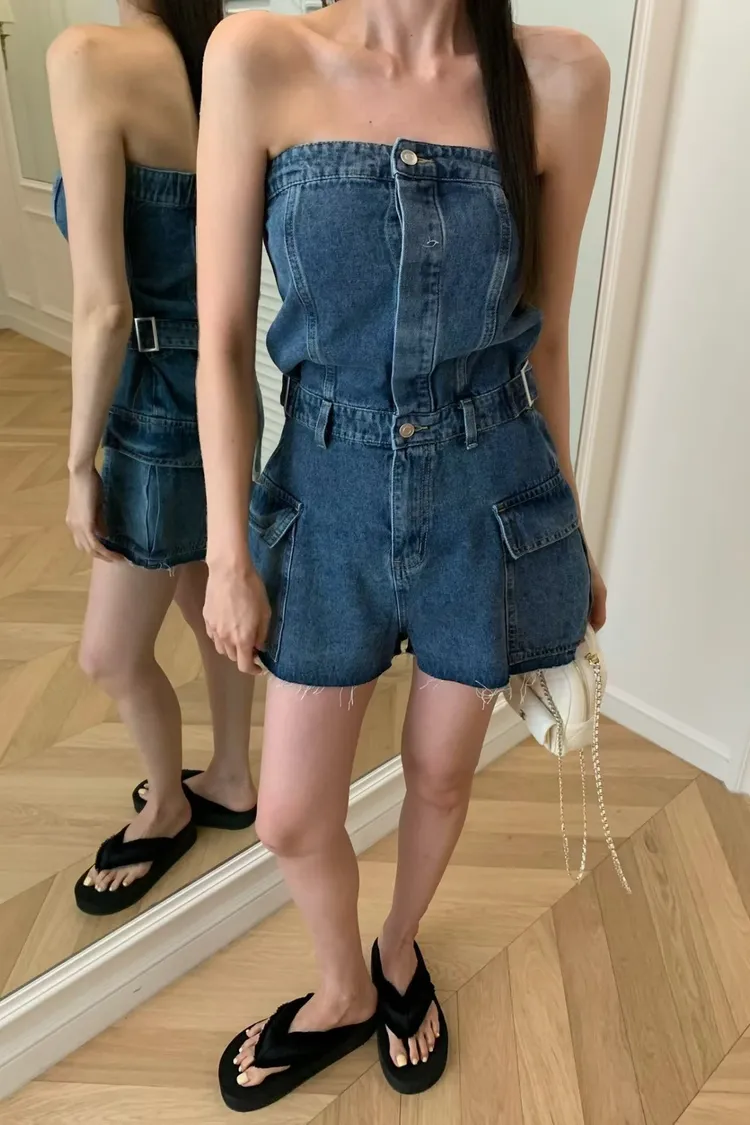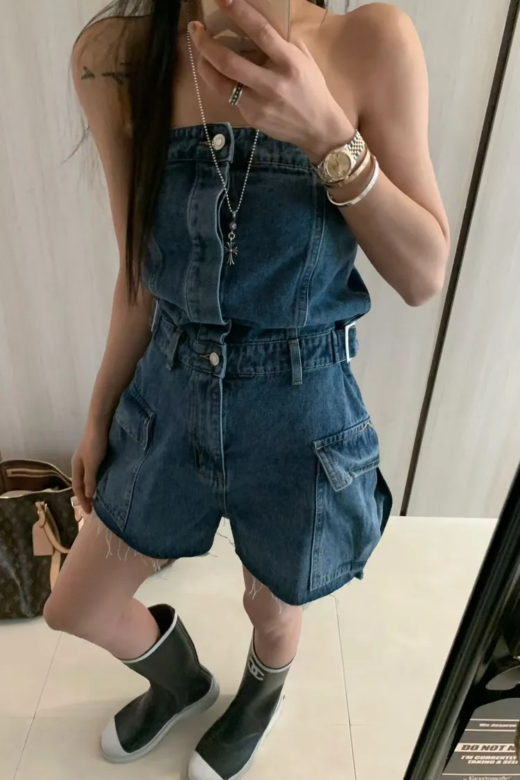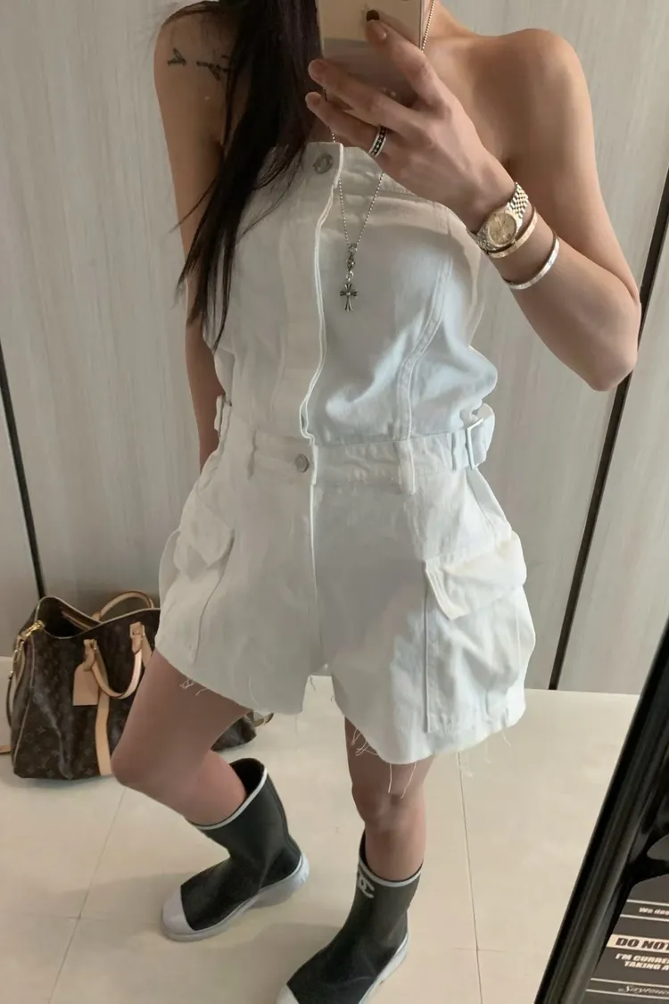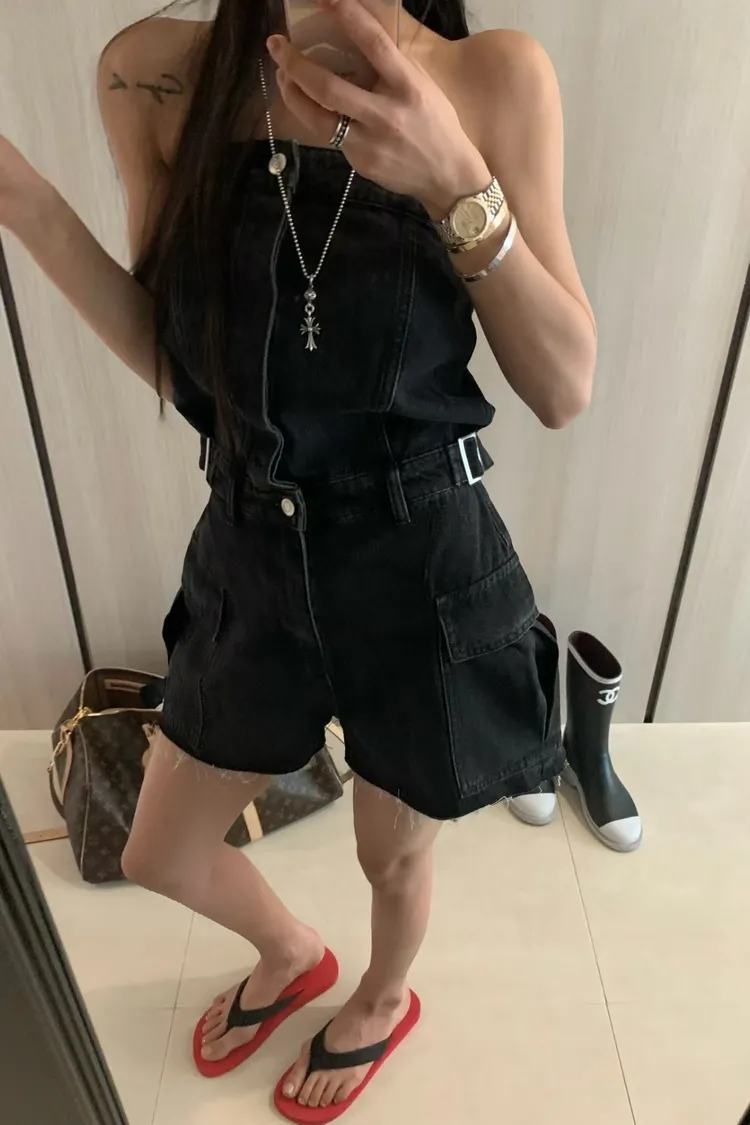 正韓 時髦工裝口袋連身褲(短褲版)