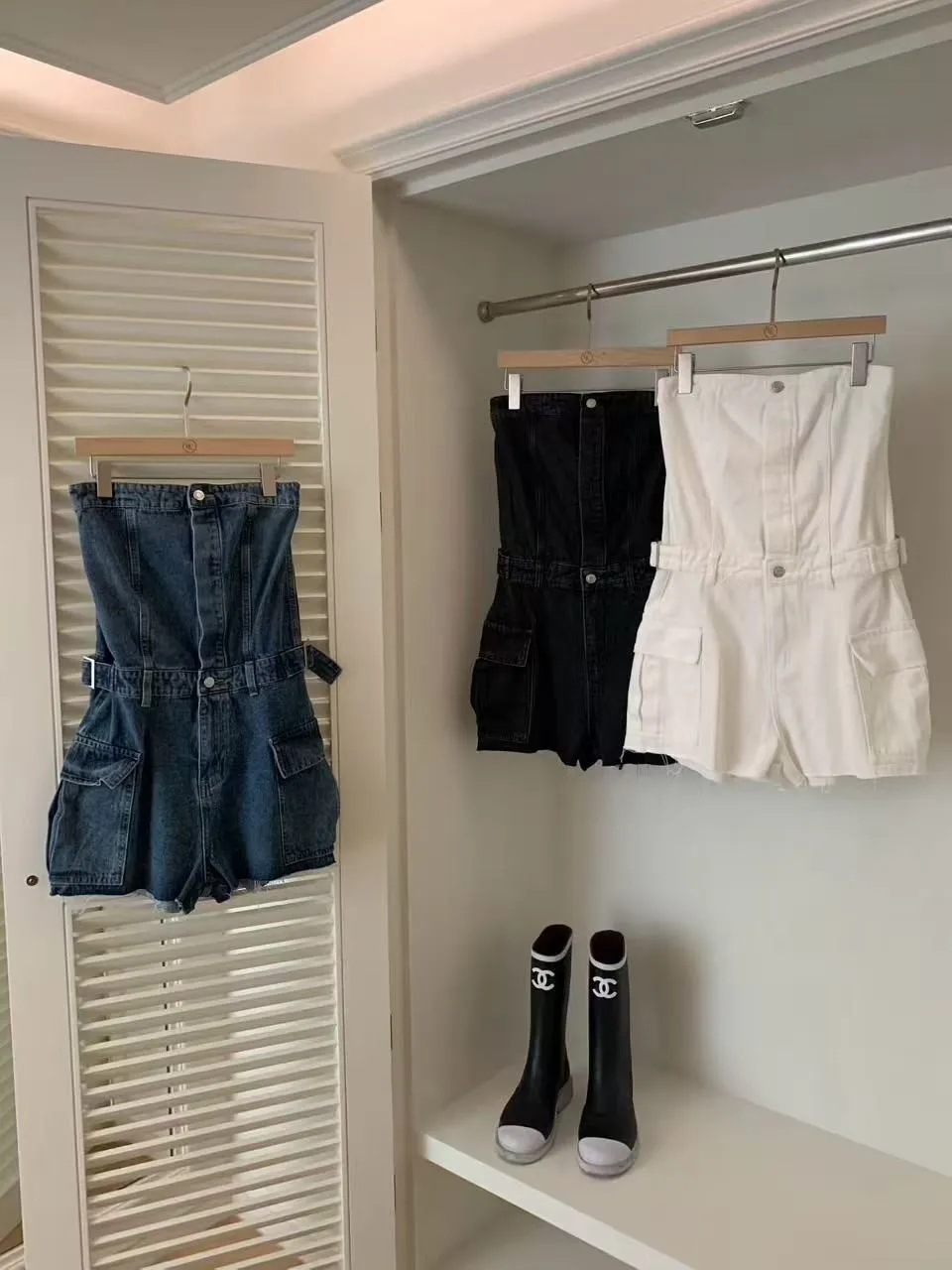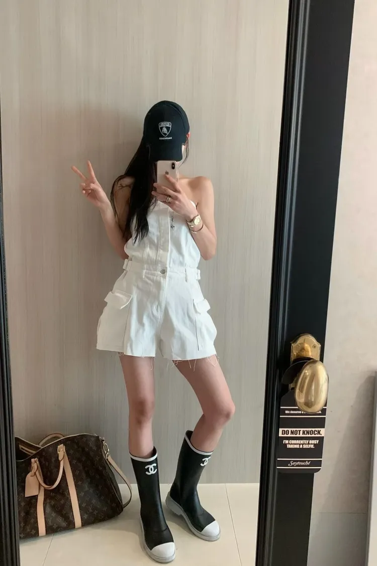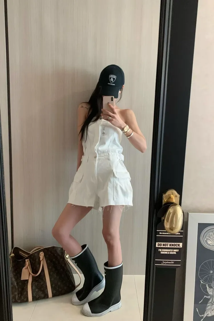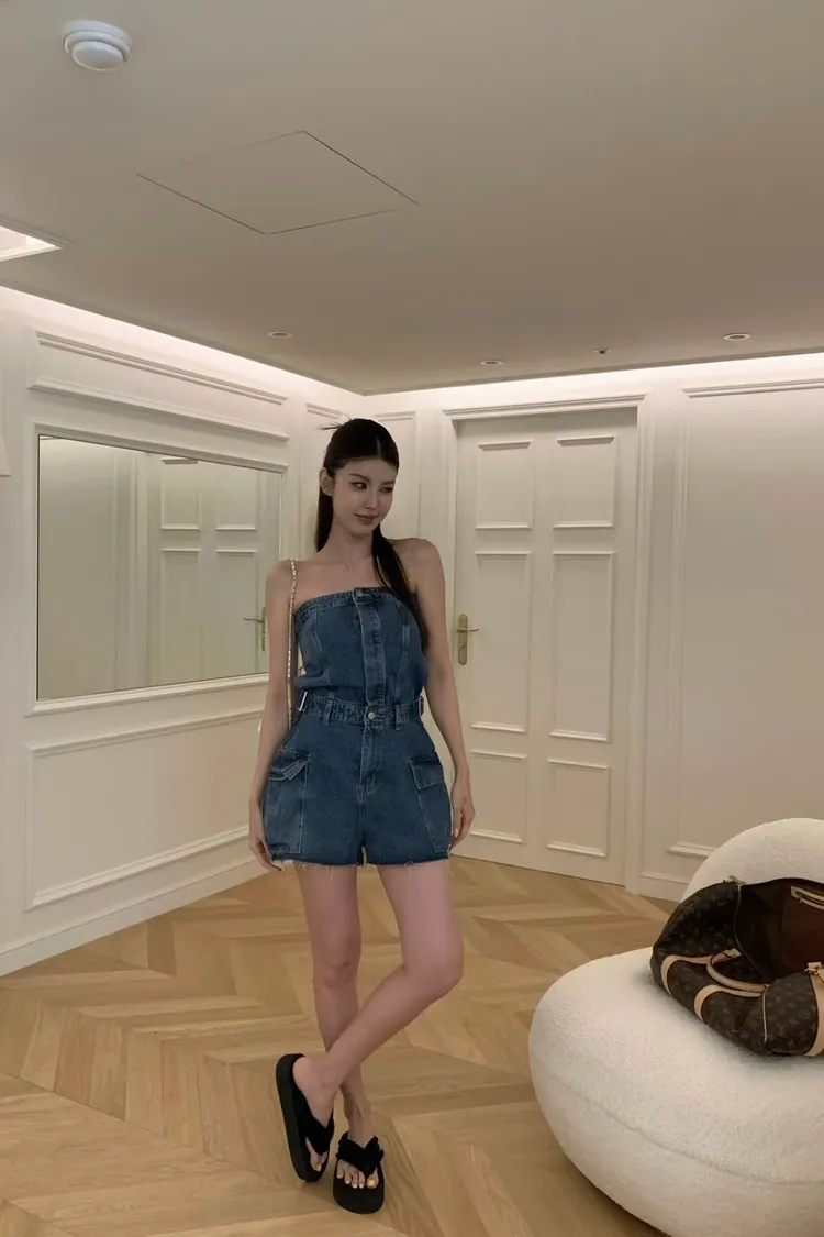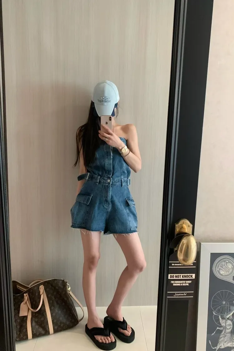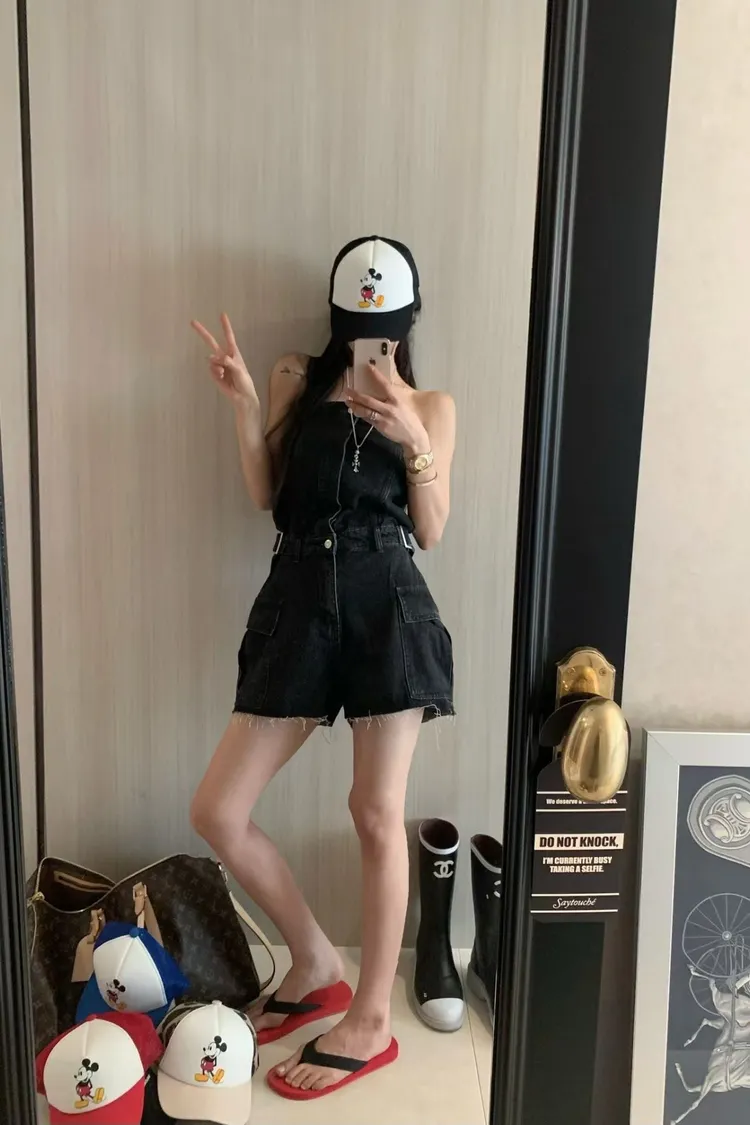 正韓 時髦工裝口袋連身褲(短褲版)