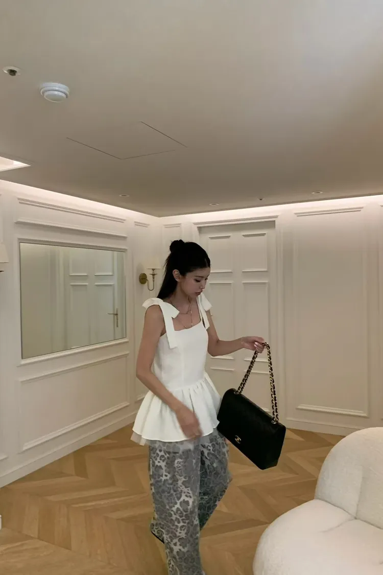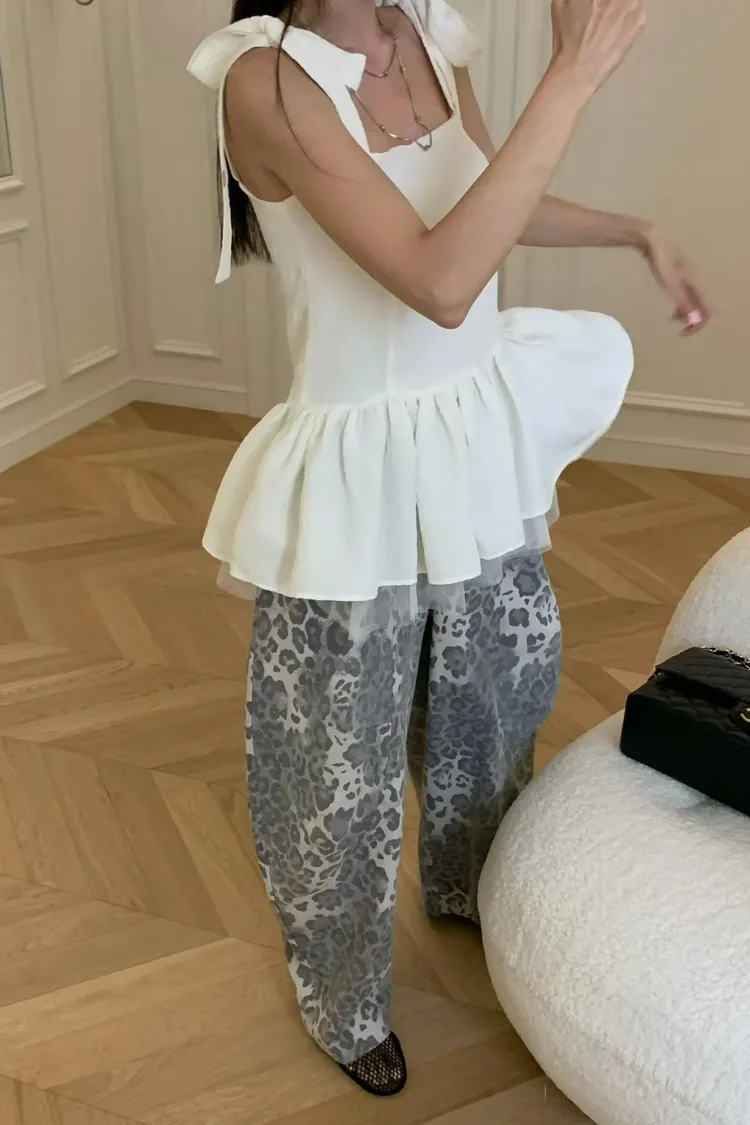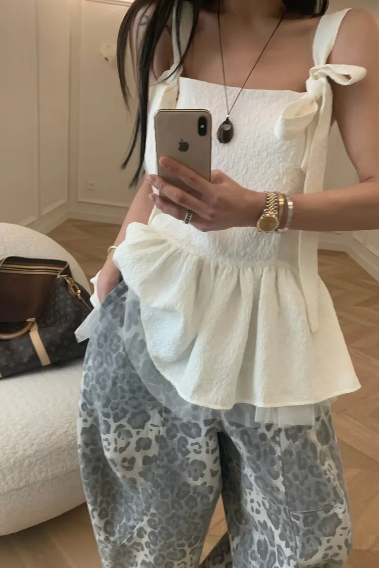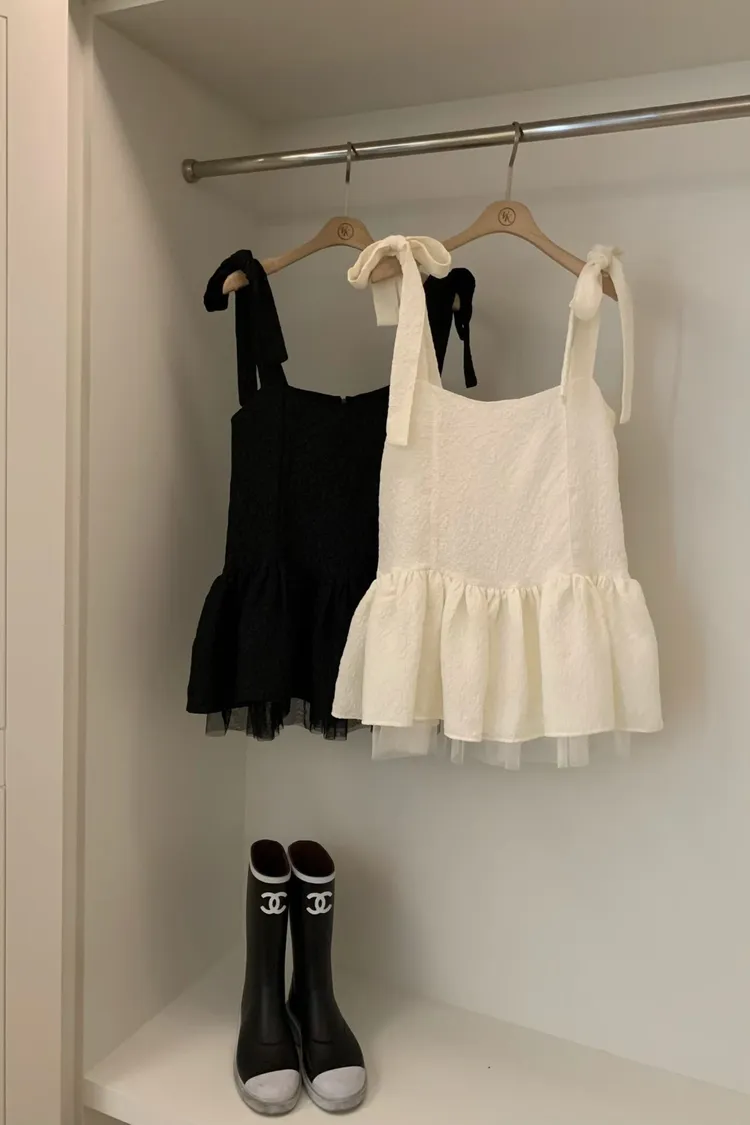 正韓 綁帶蝴蝶結雙層紗上衣