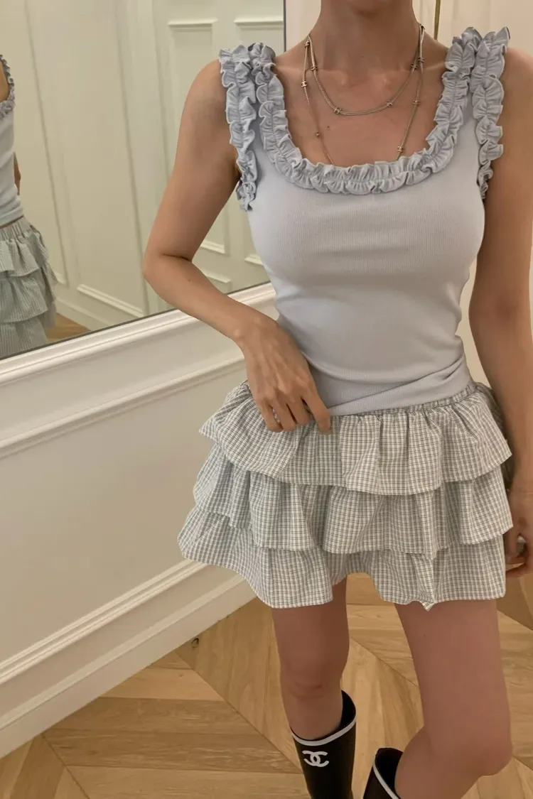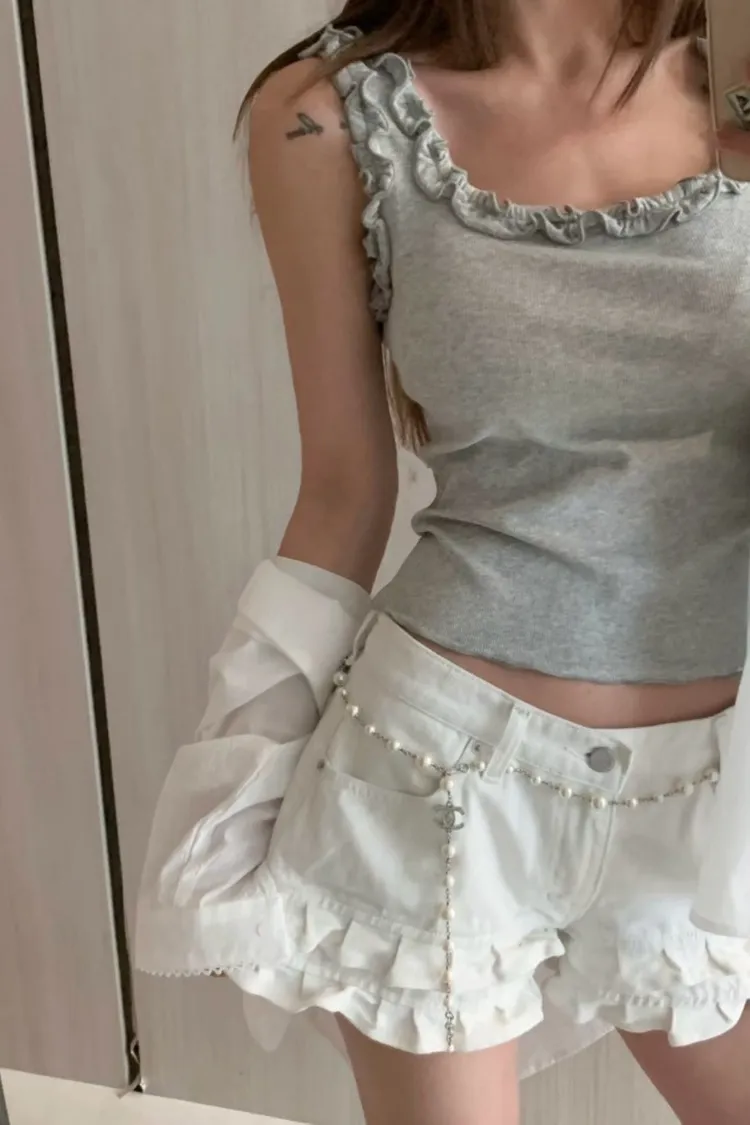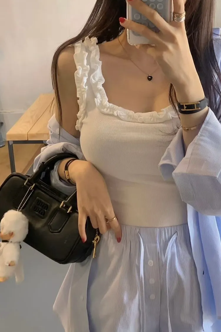 正韓 立體荷葉朵邊背心