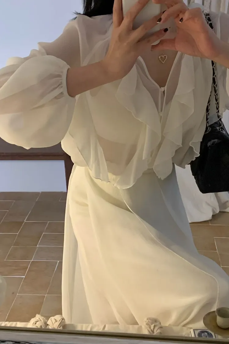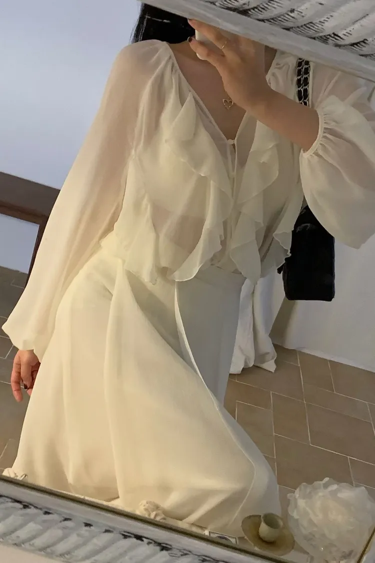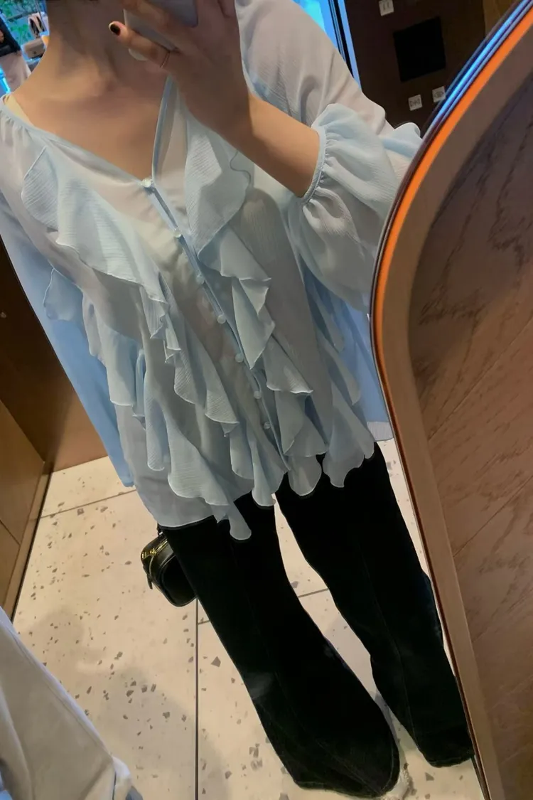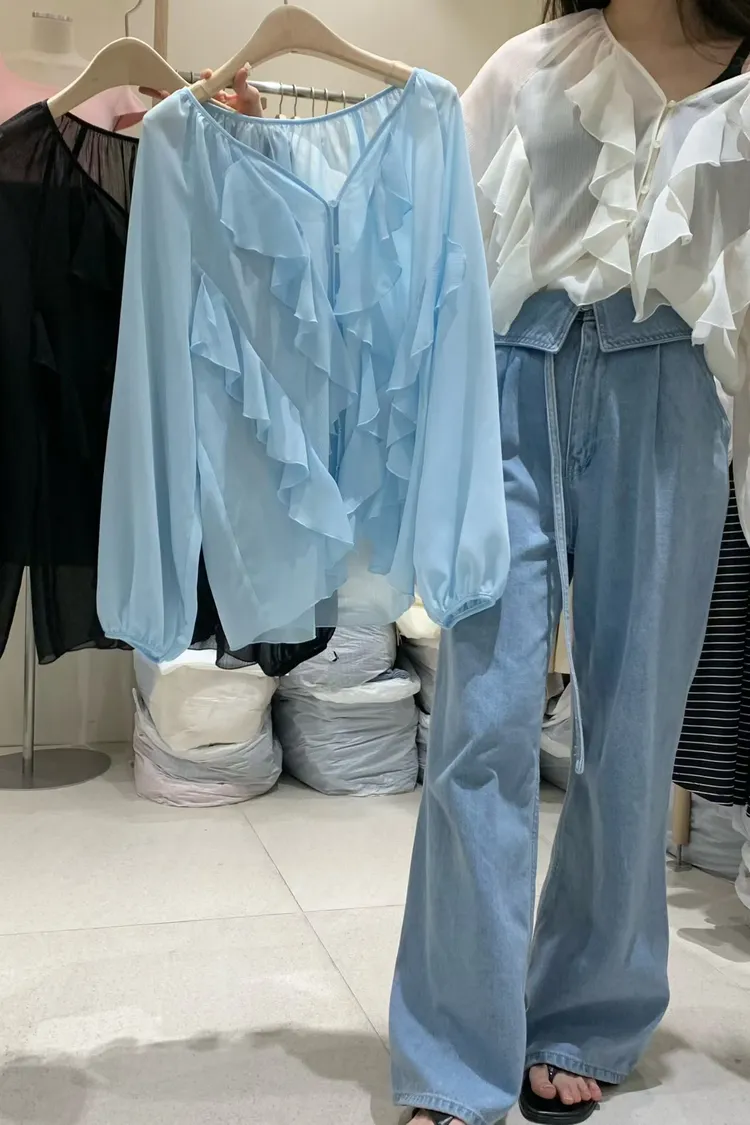 正韓 唯美時尚荷葉上衣