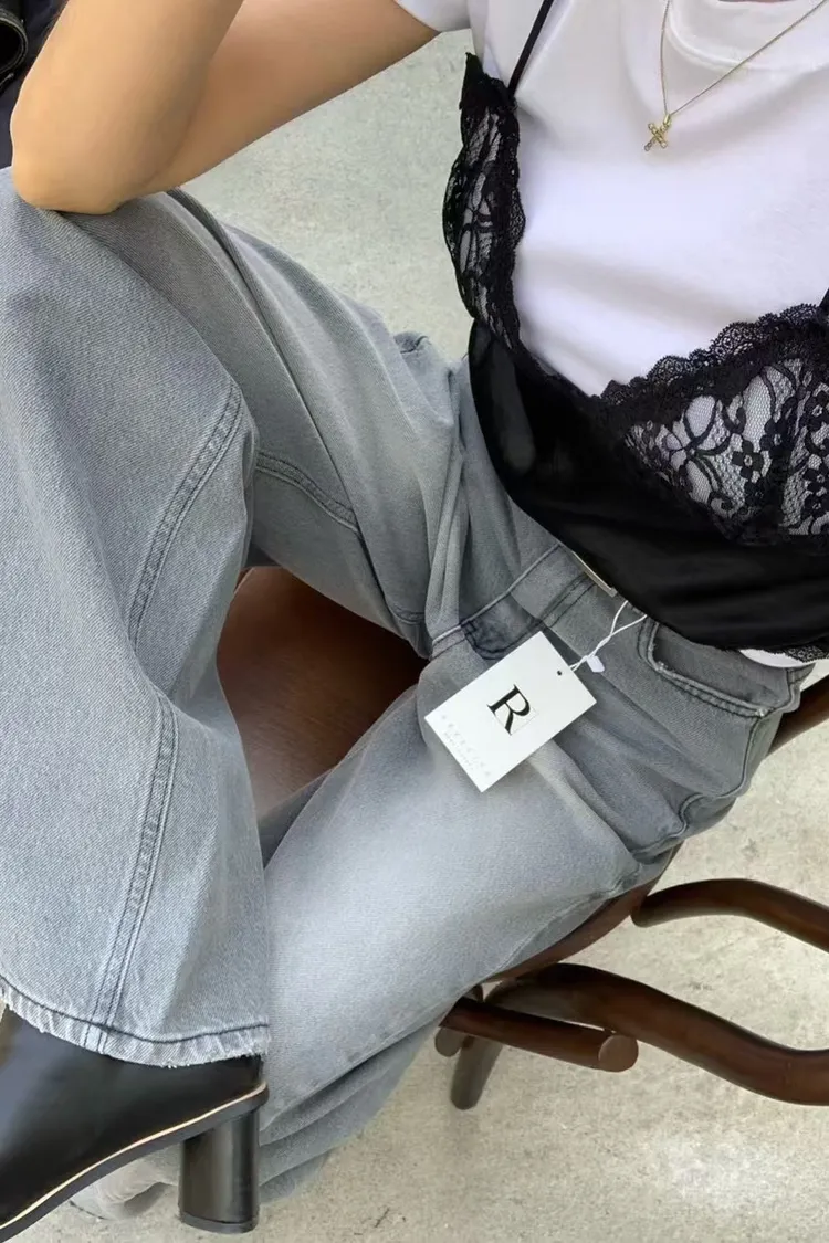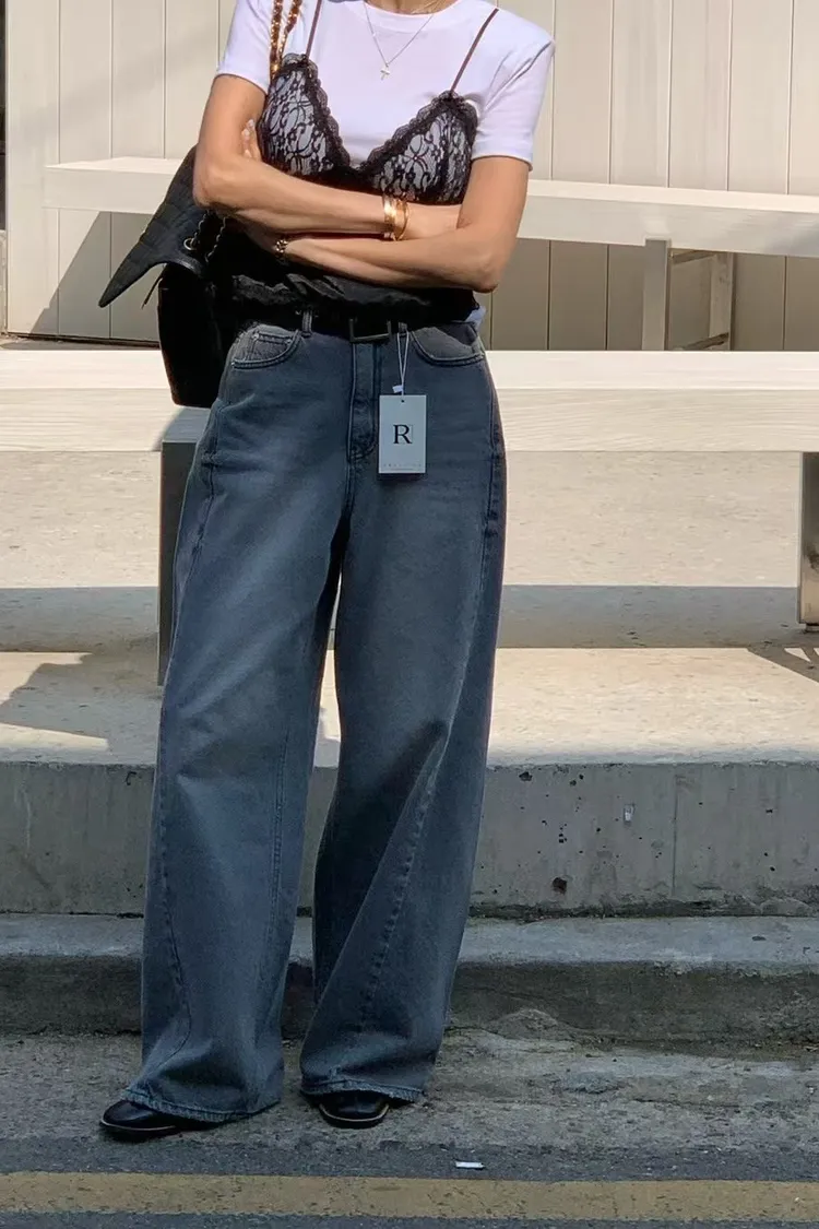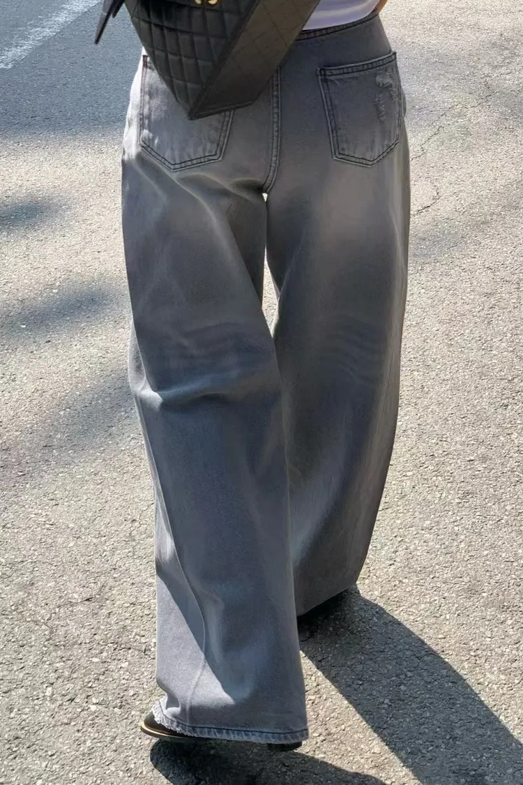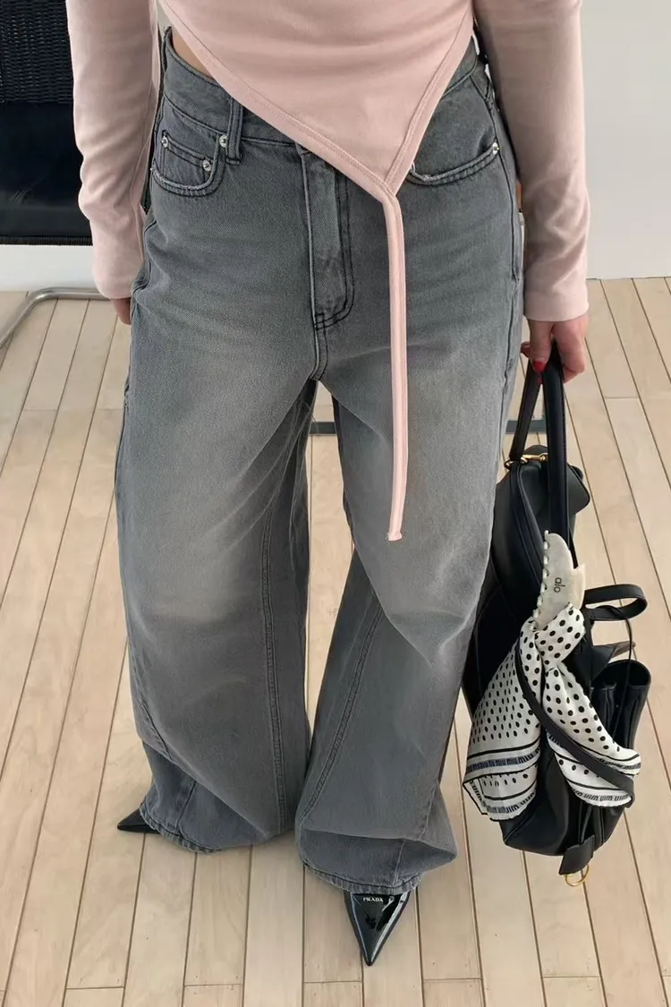 正韓 煙灰刷色高腰長腿褲