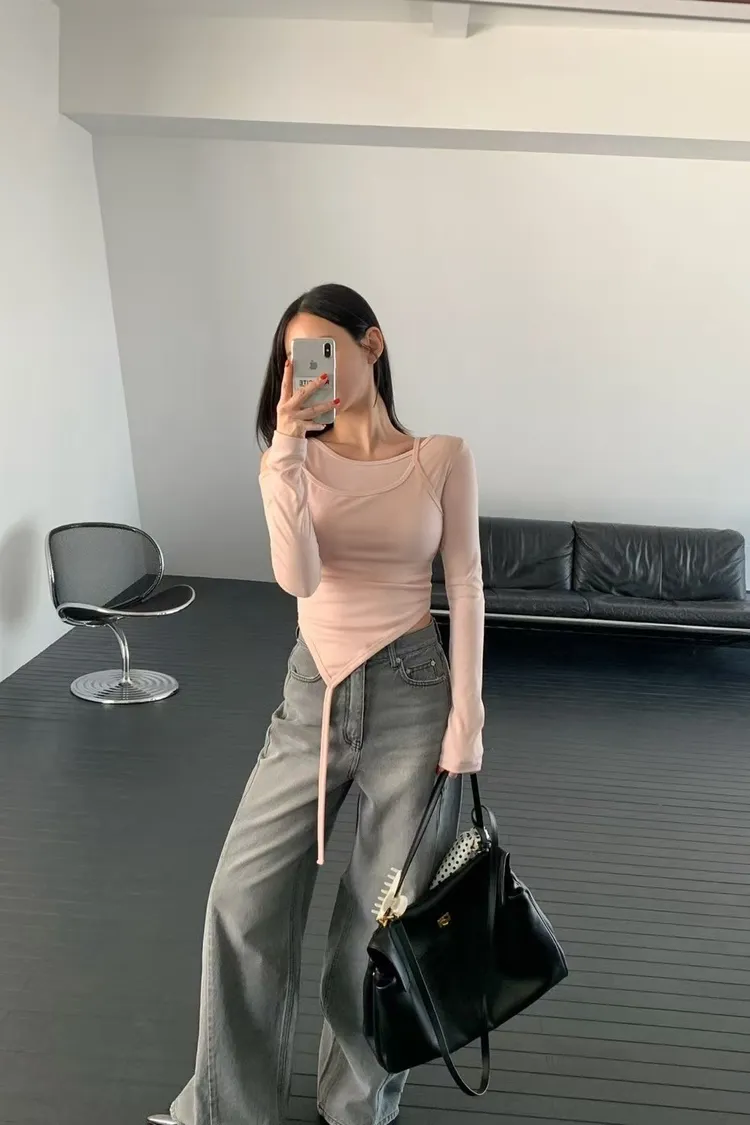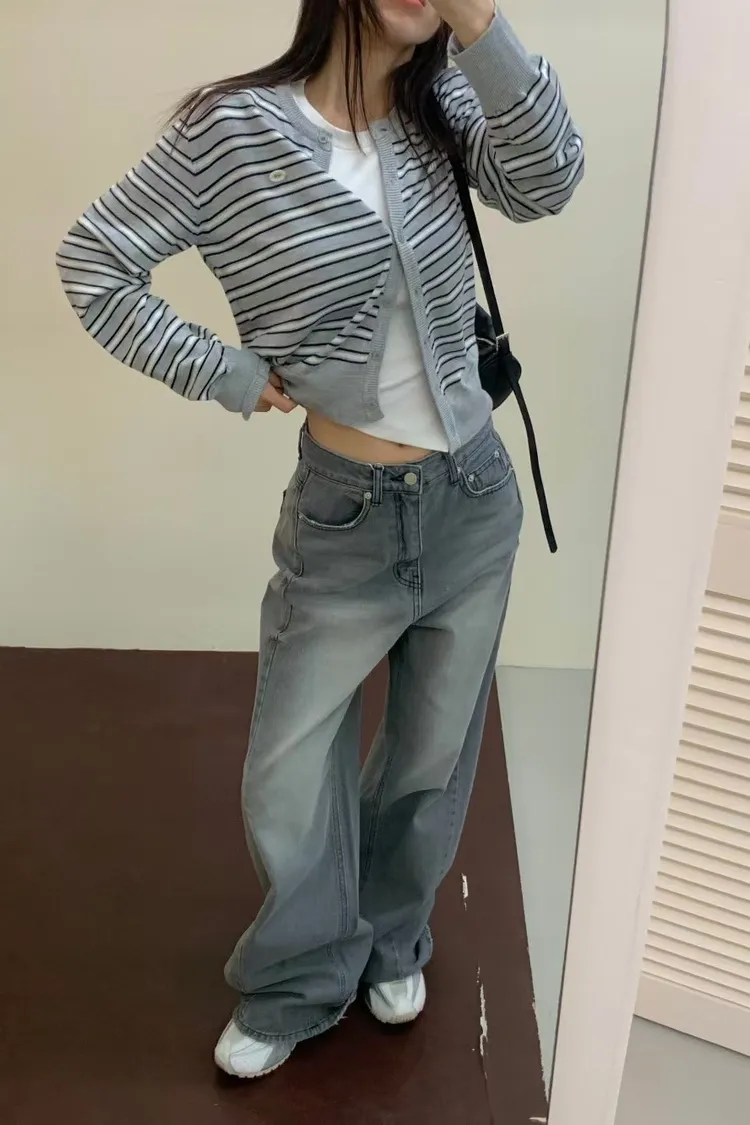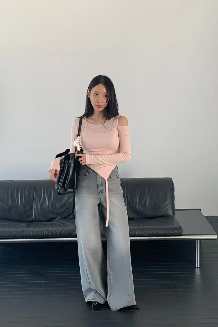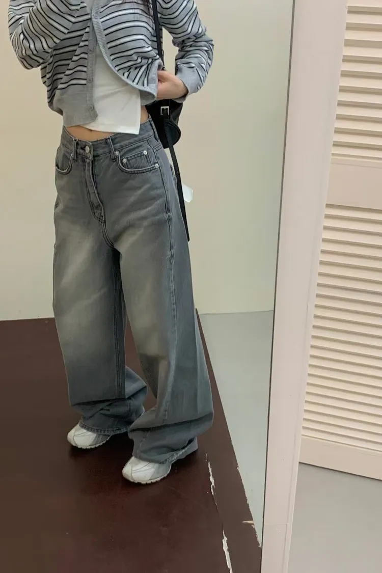 正韓 煙灰刷色高腰長腿褲
