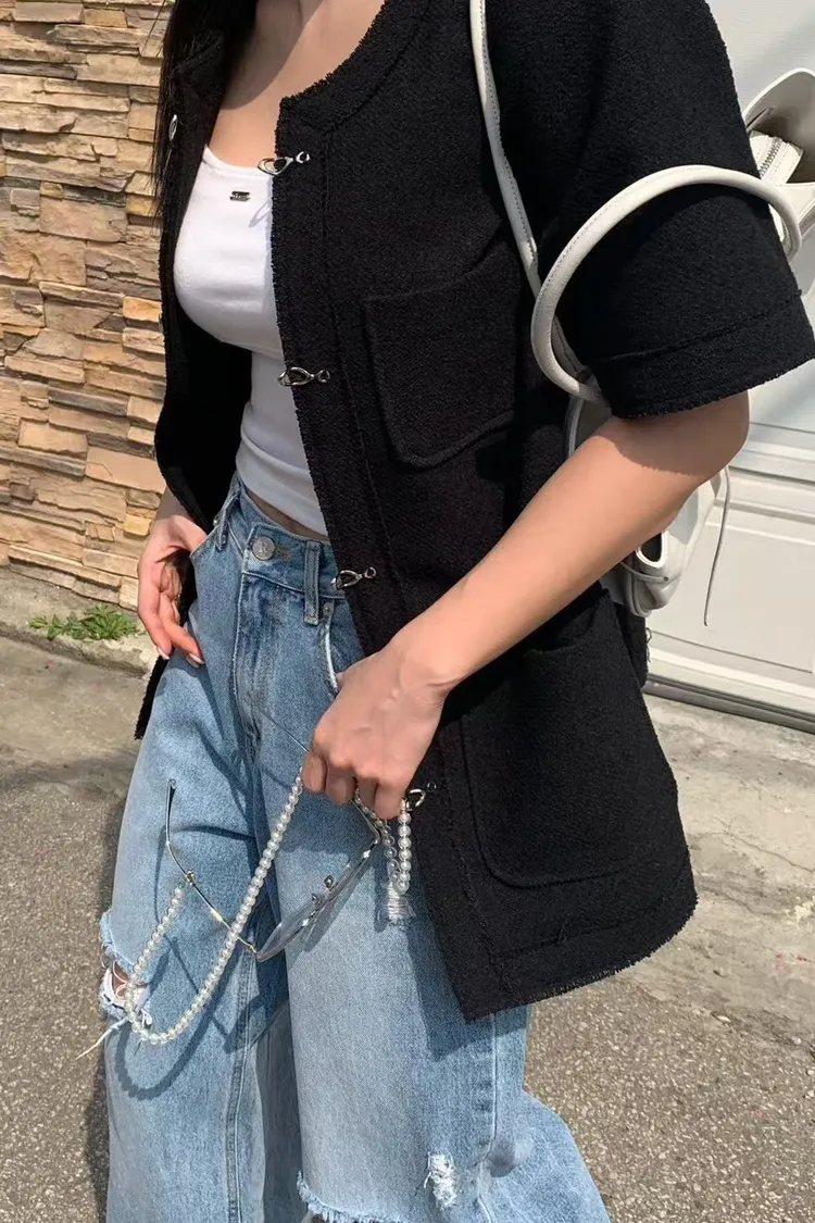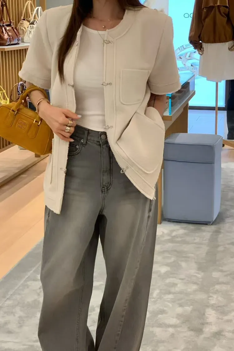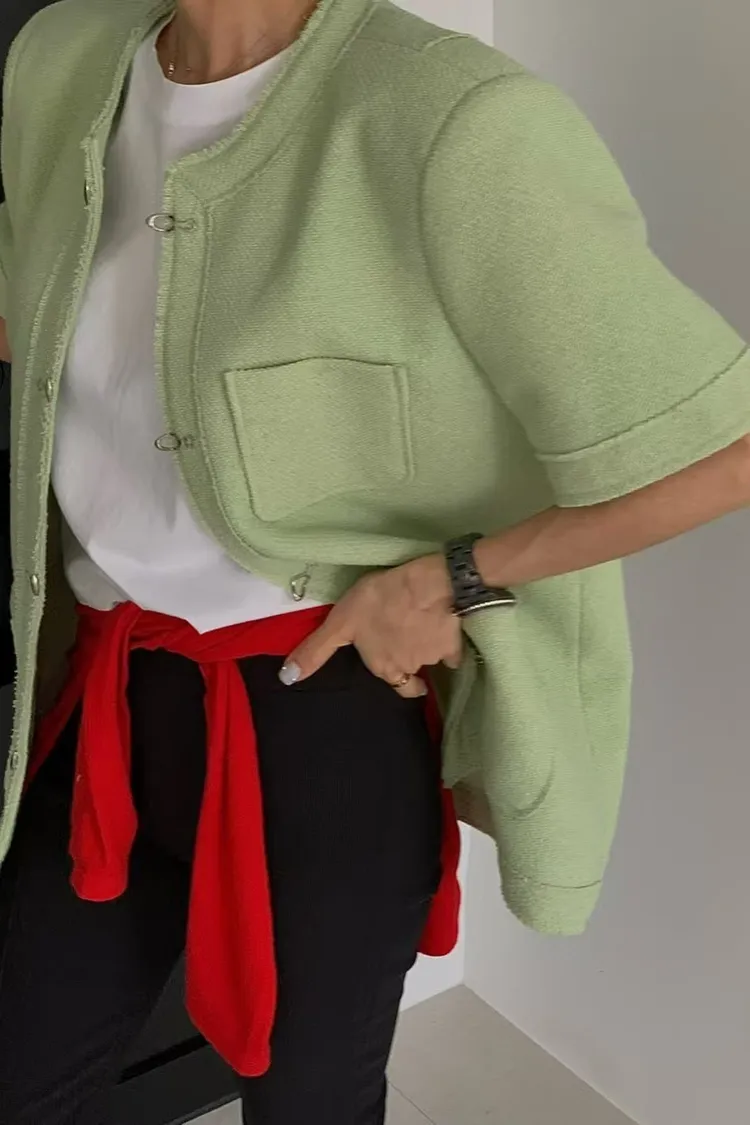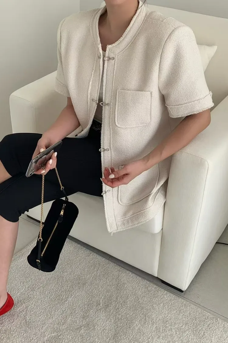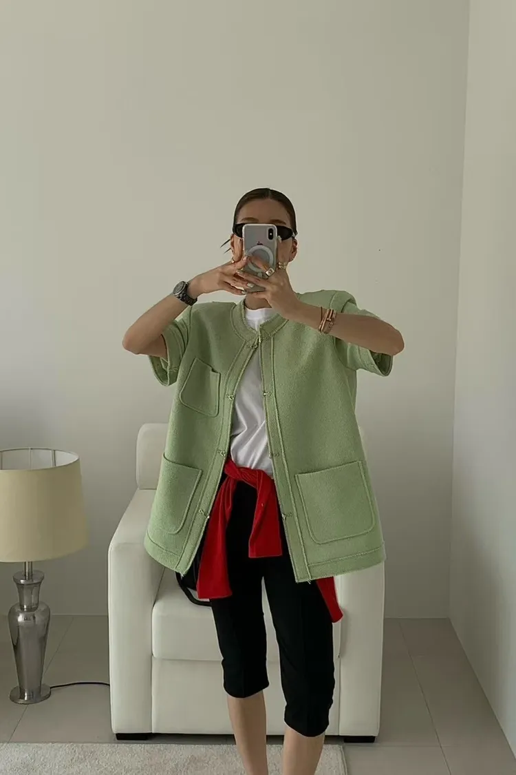 正韓 高級感毛呢短袖外套