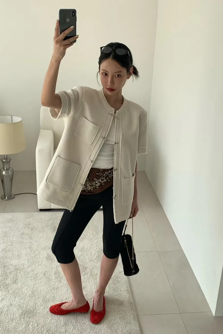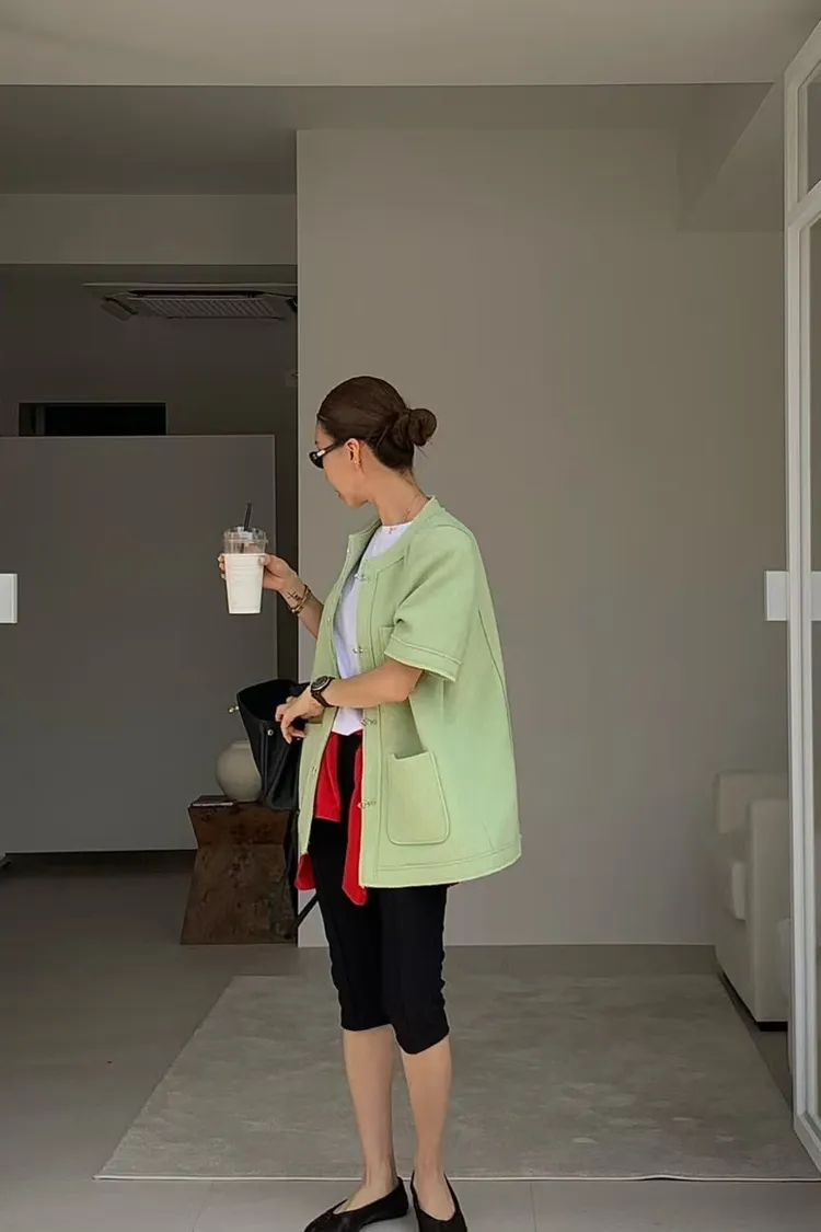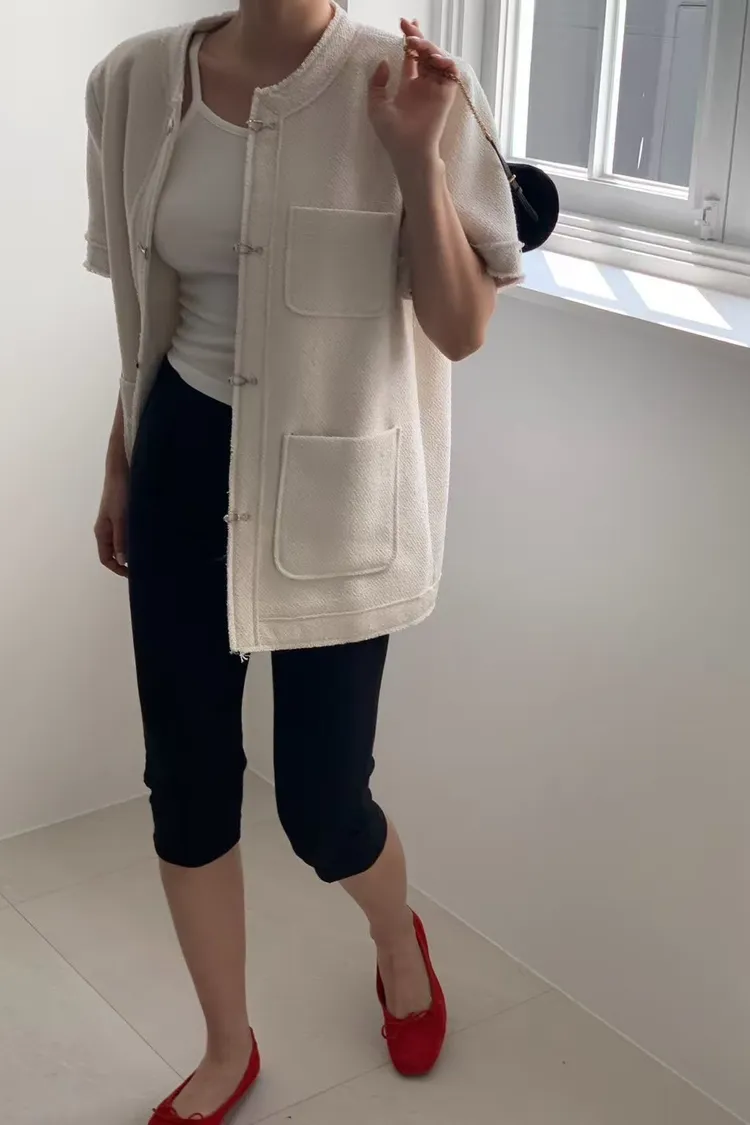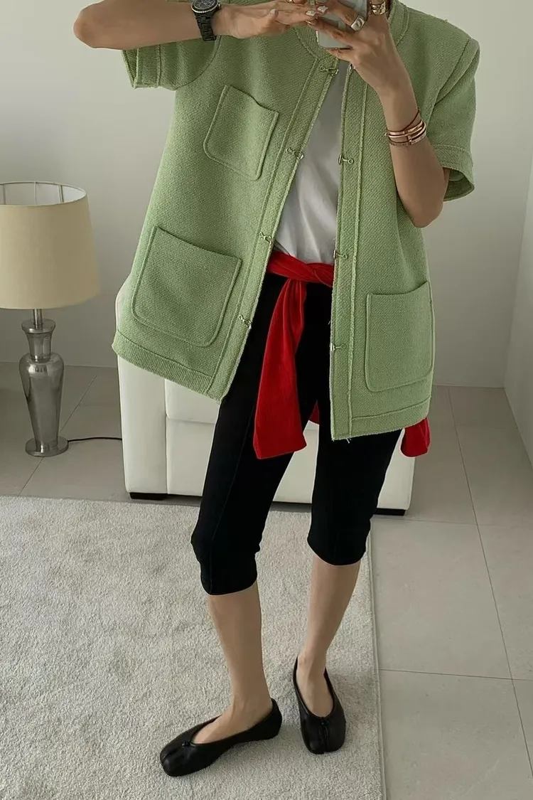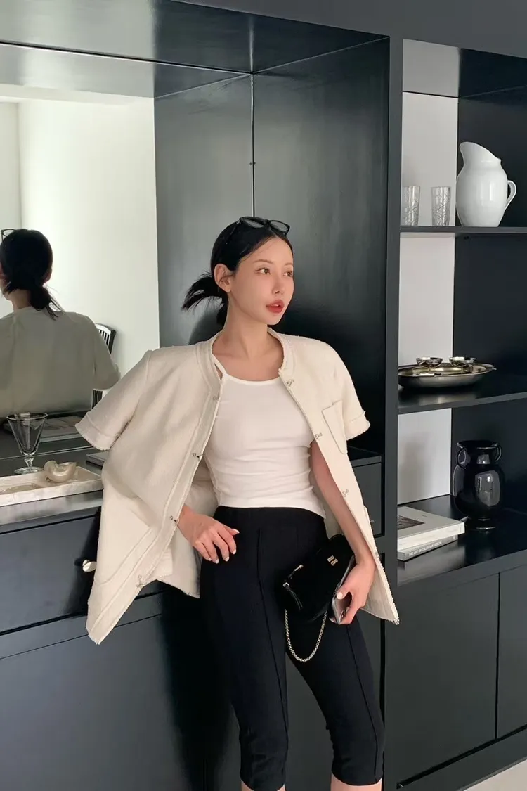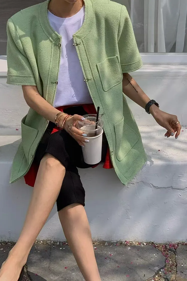 正韓 高級感毛呢短袖外套