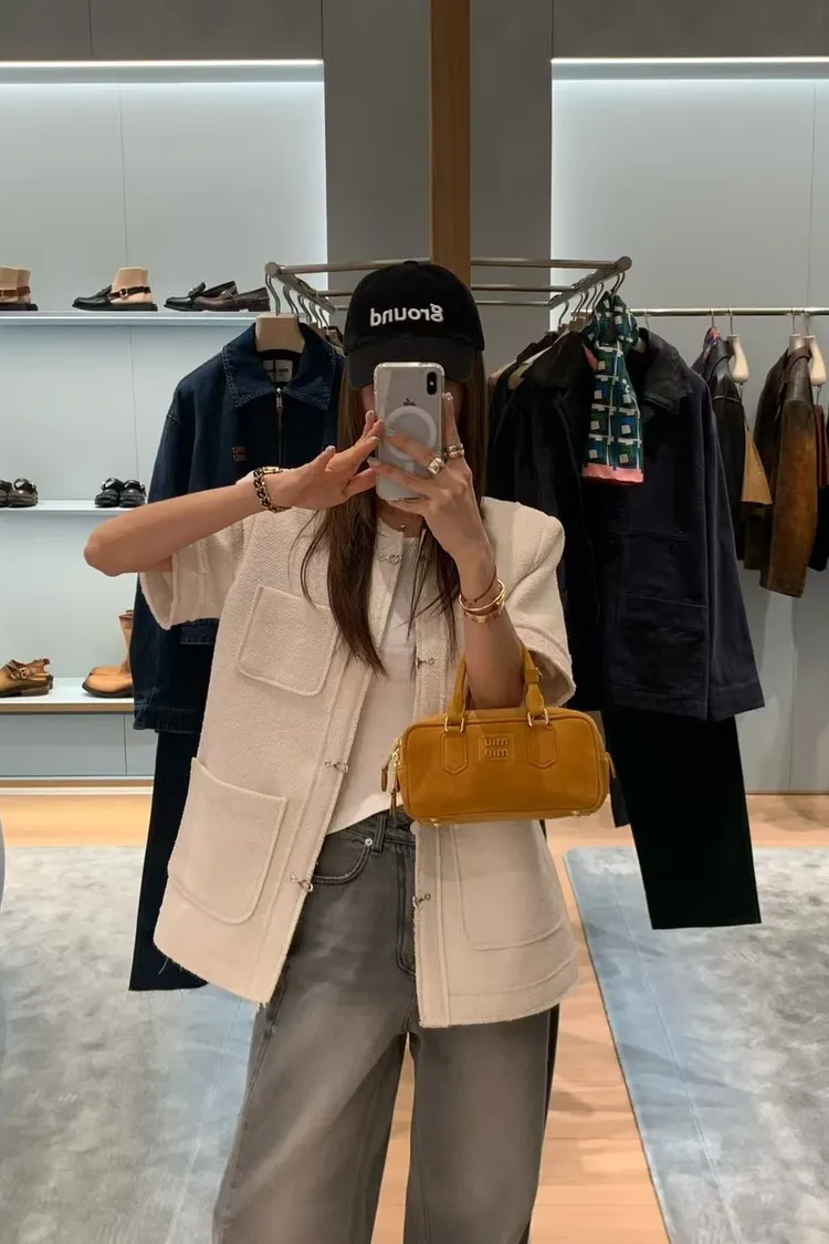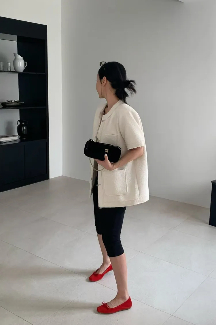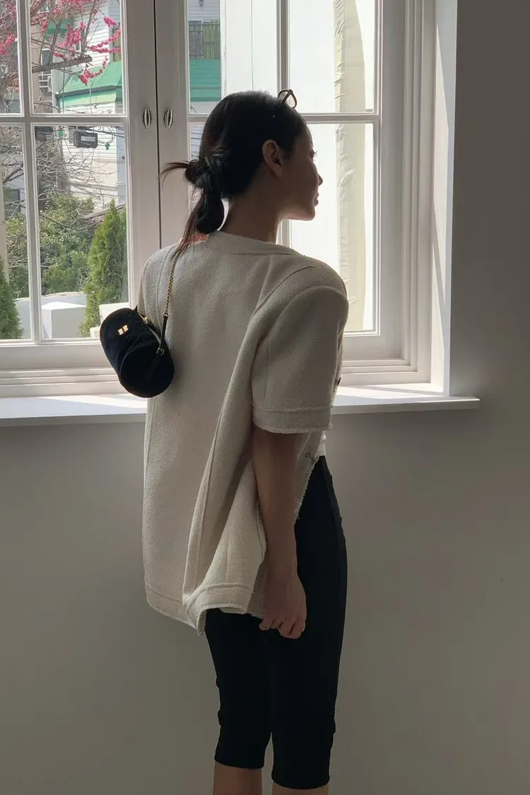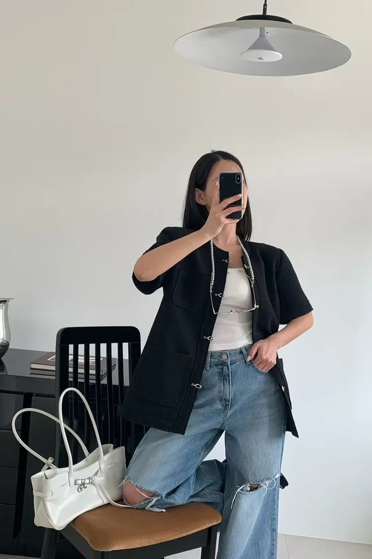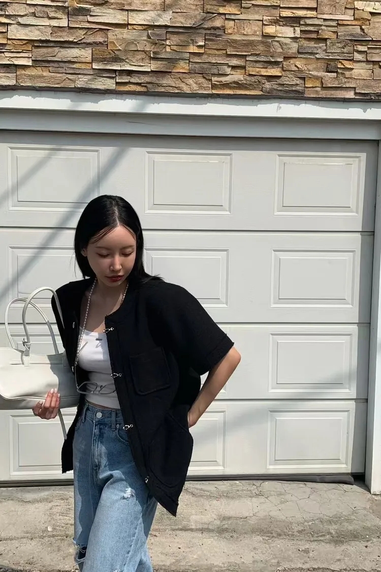 正韓 高級感毛呢短袖外套