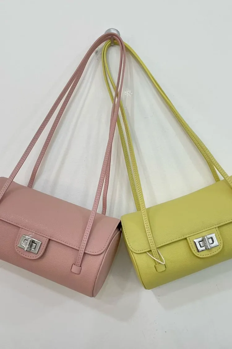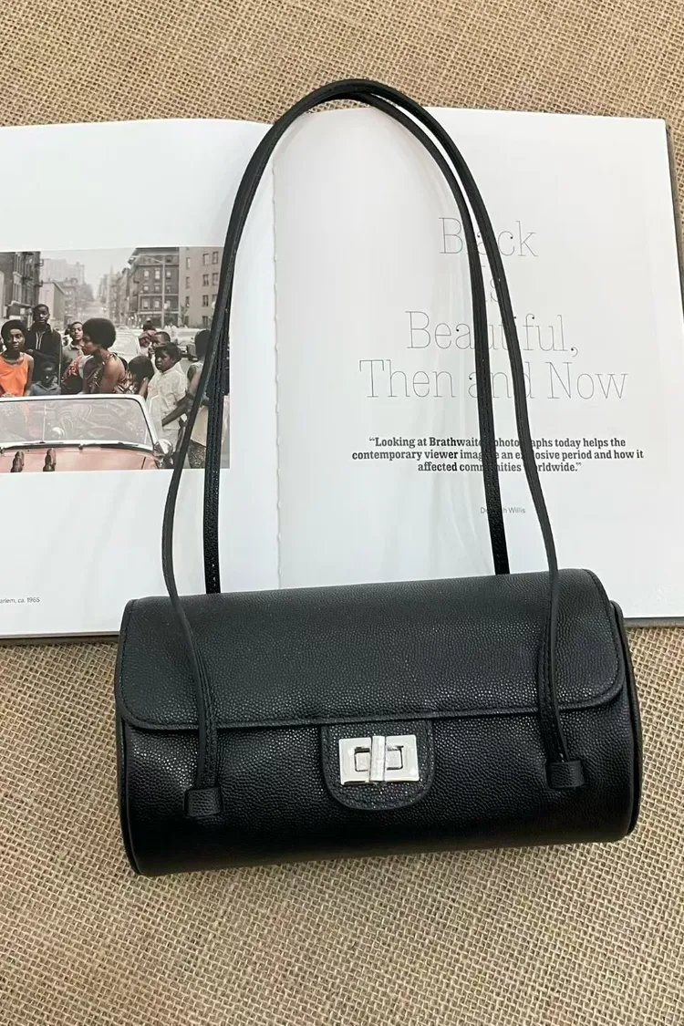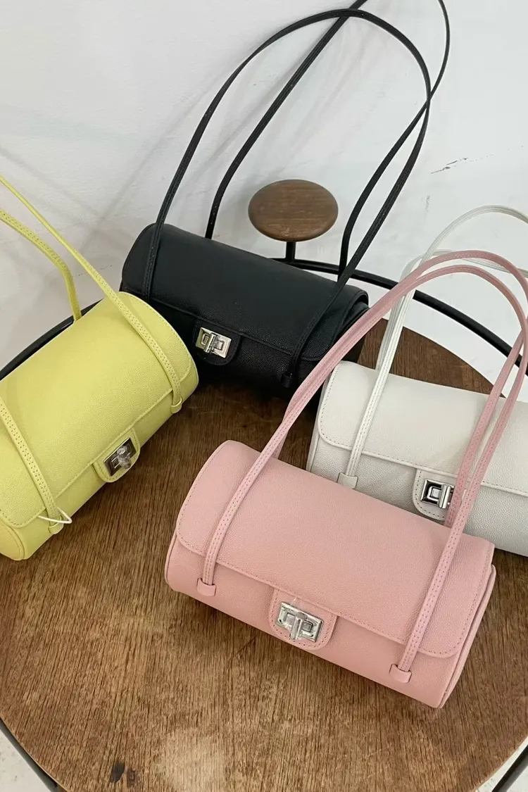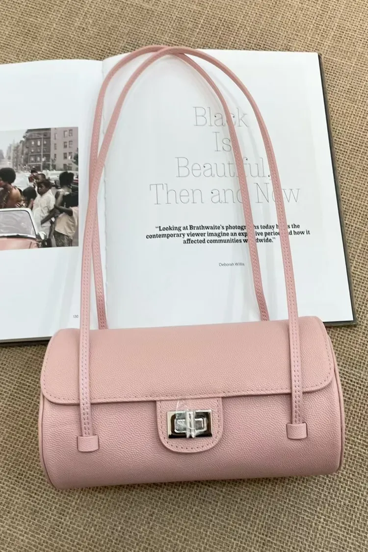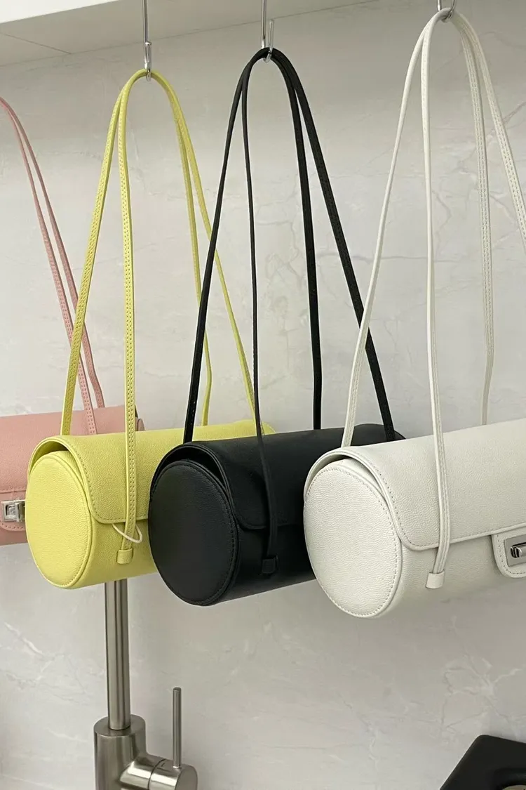 正韓 時髦真皮圓筒肩背包