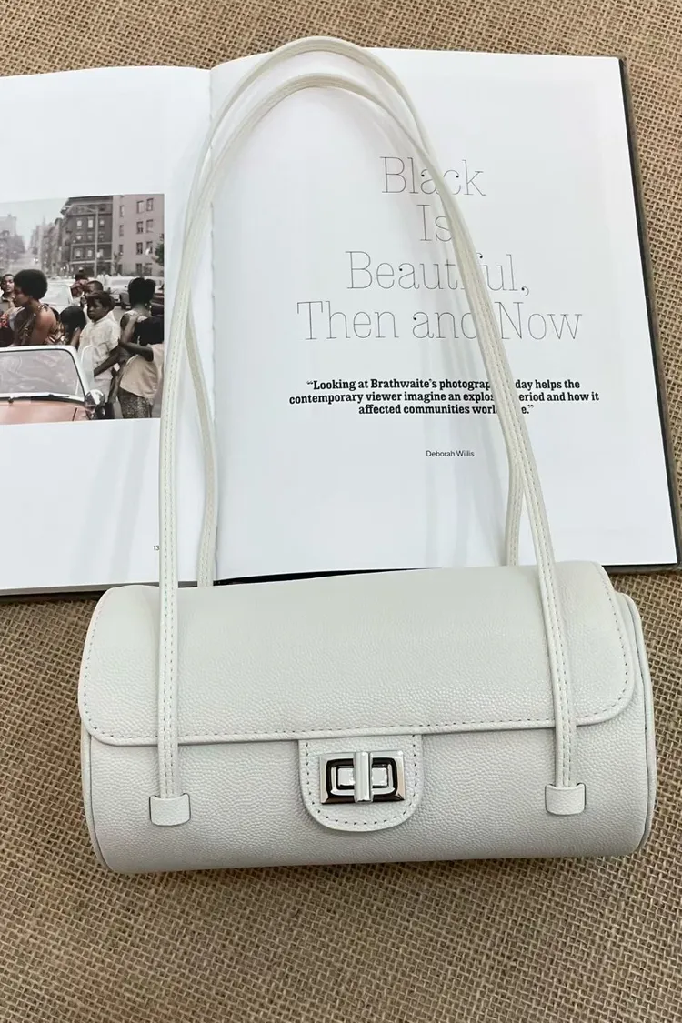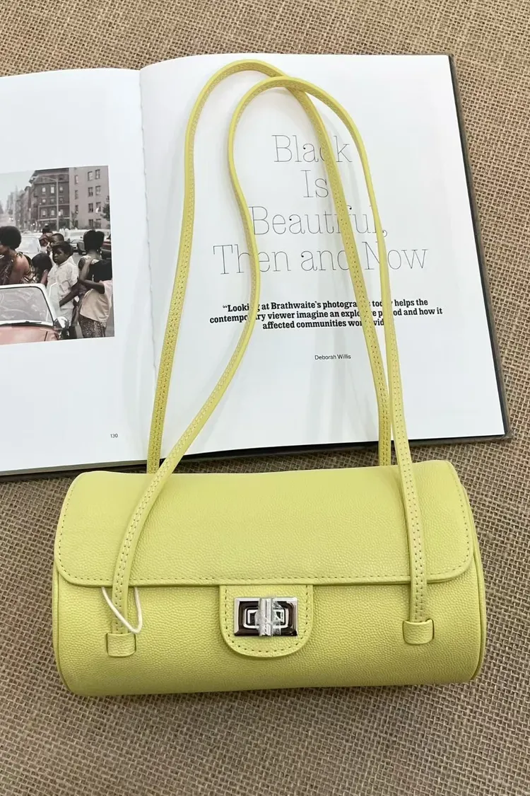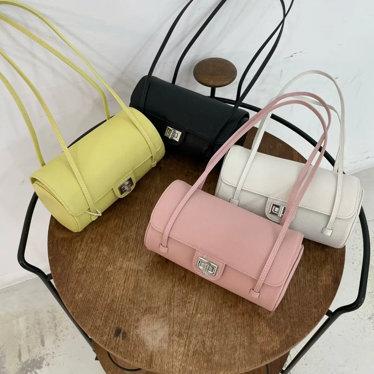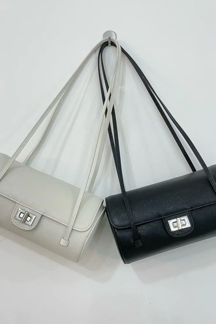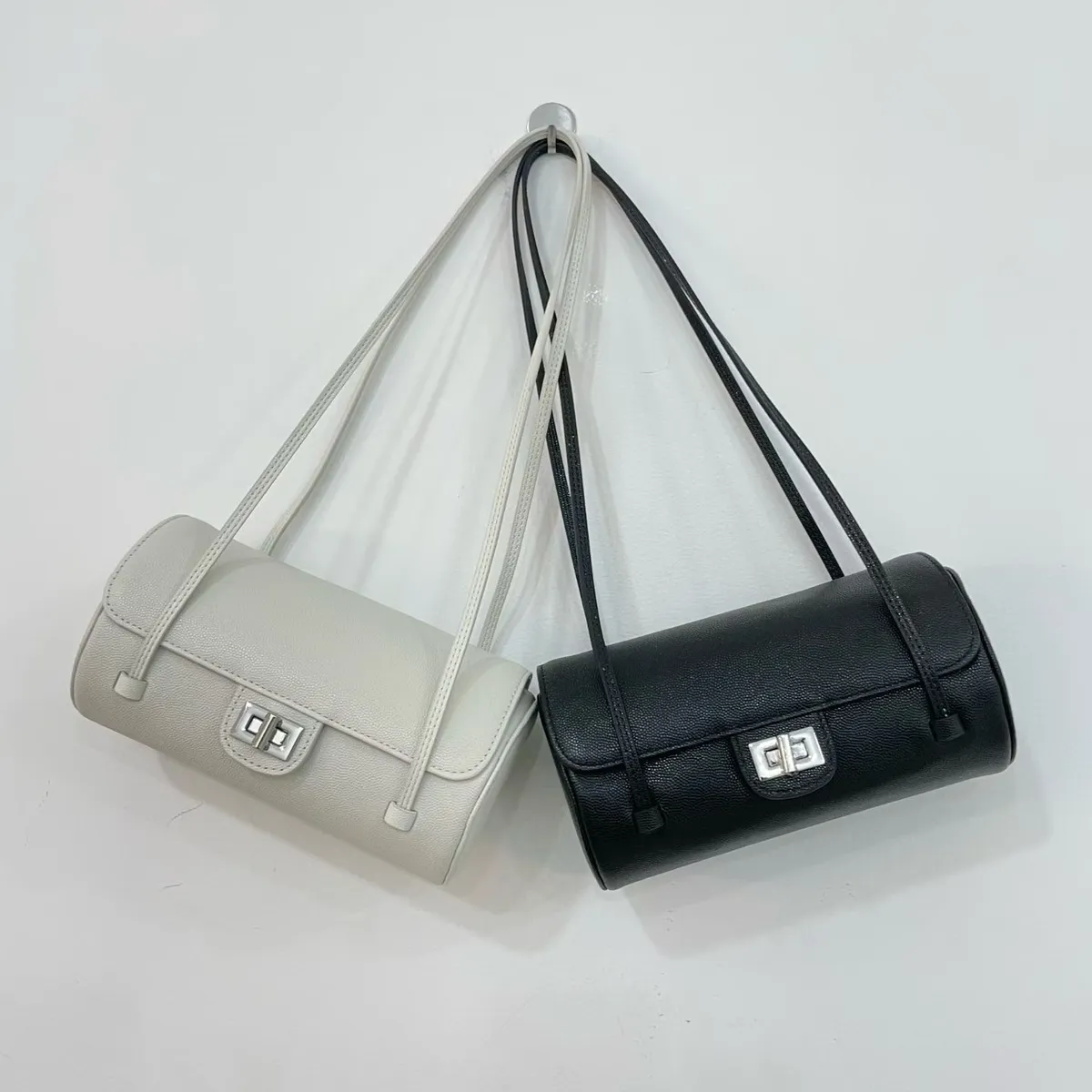 正韓 時髦真皮圓筒肩背包