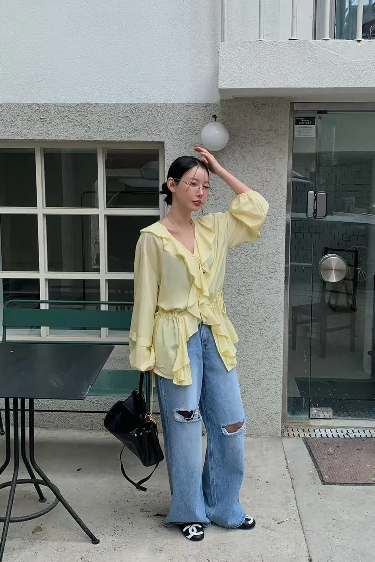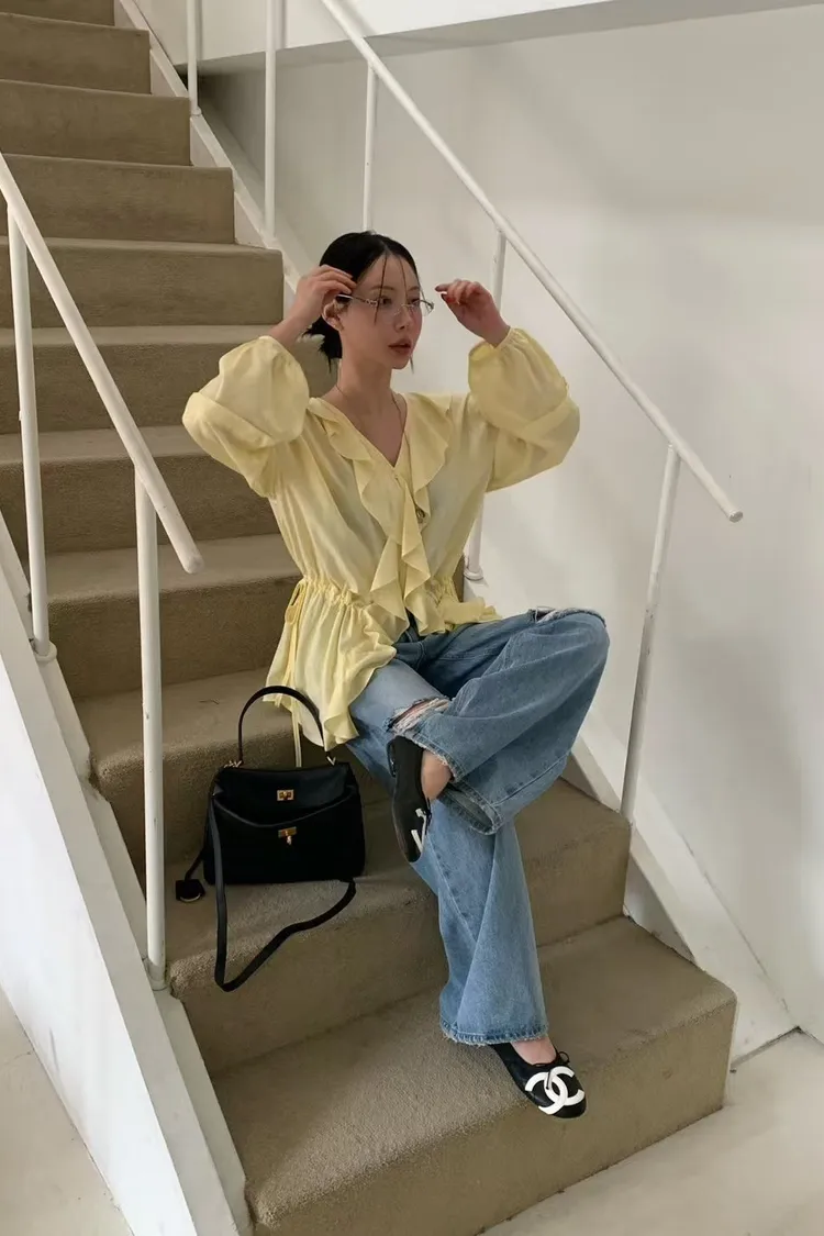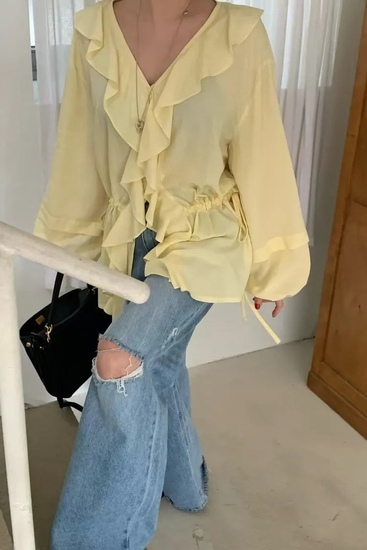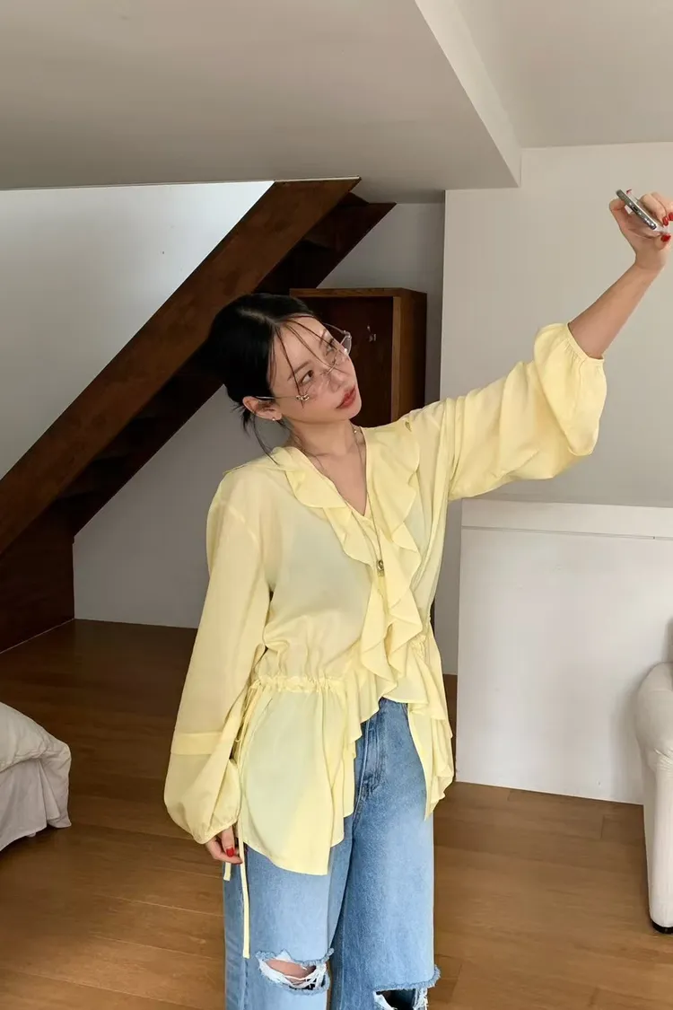正韓 花園漫步透紗上衣洋