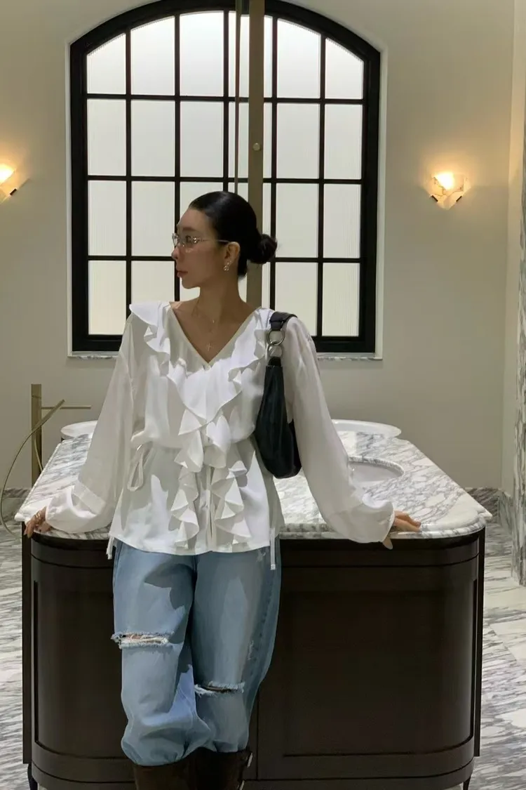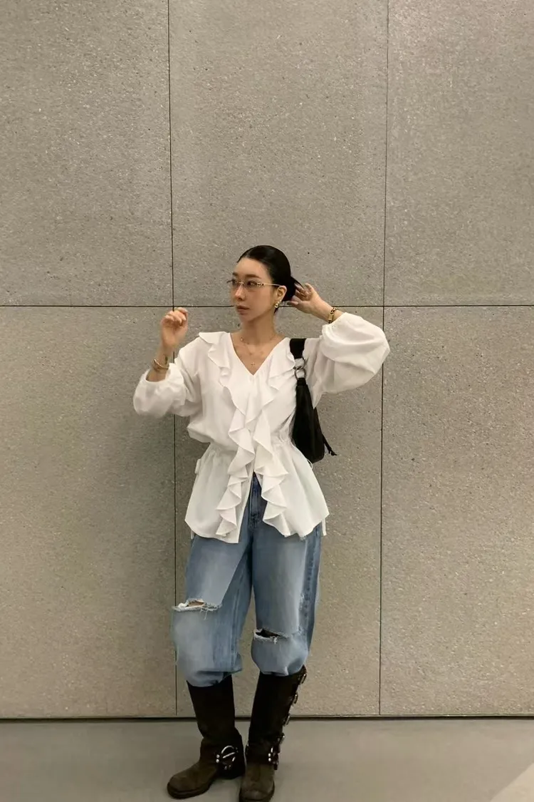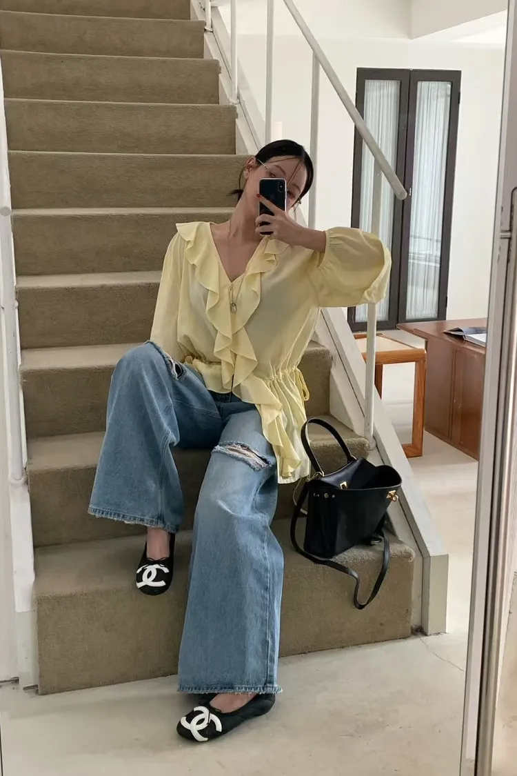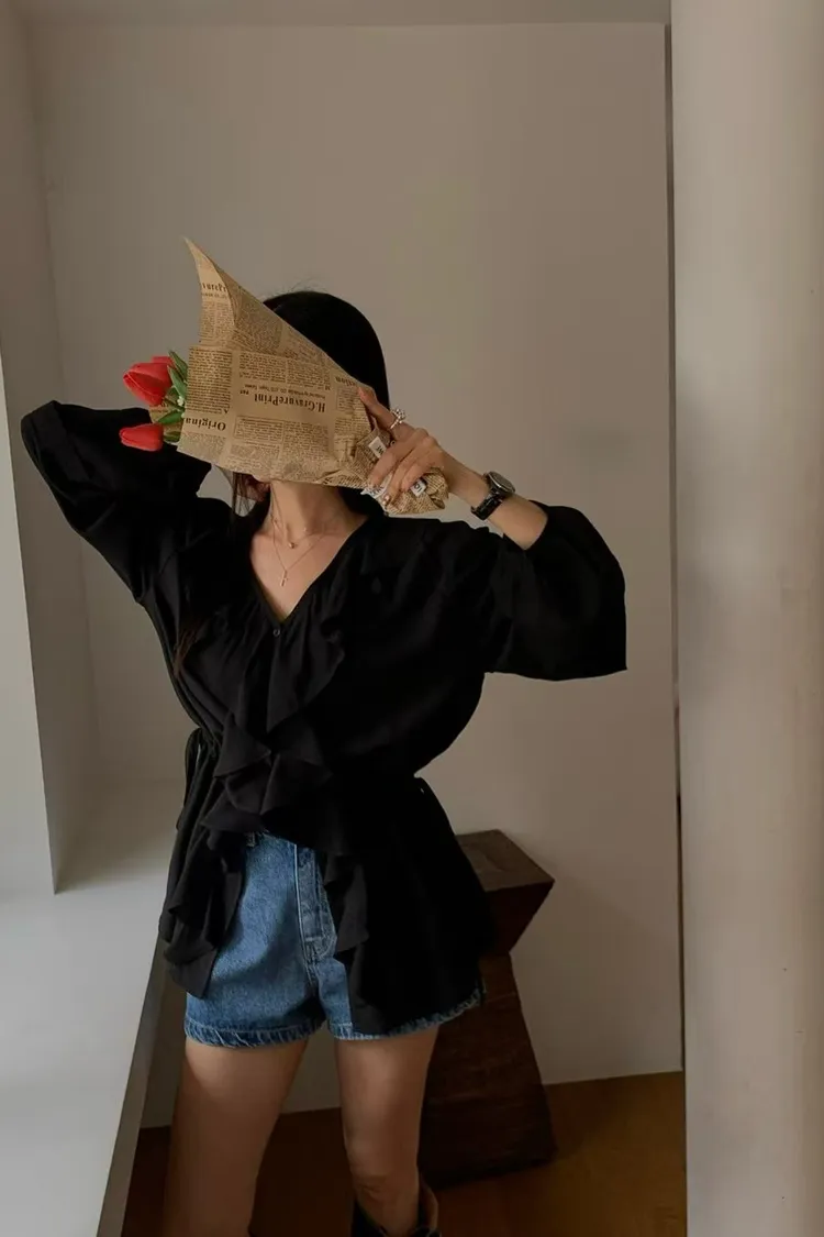 正韓 花園漫步透紗上衣洋